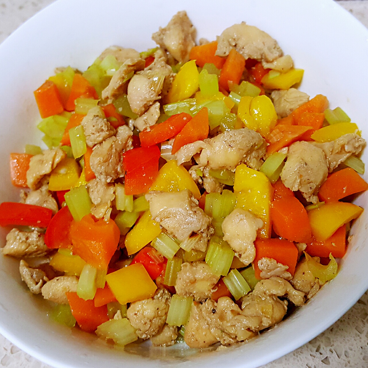 鸡肉胡萝卜芹菜五彩椒 喜欢多样菜放一起做,尝试做出好看又好吃的菜