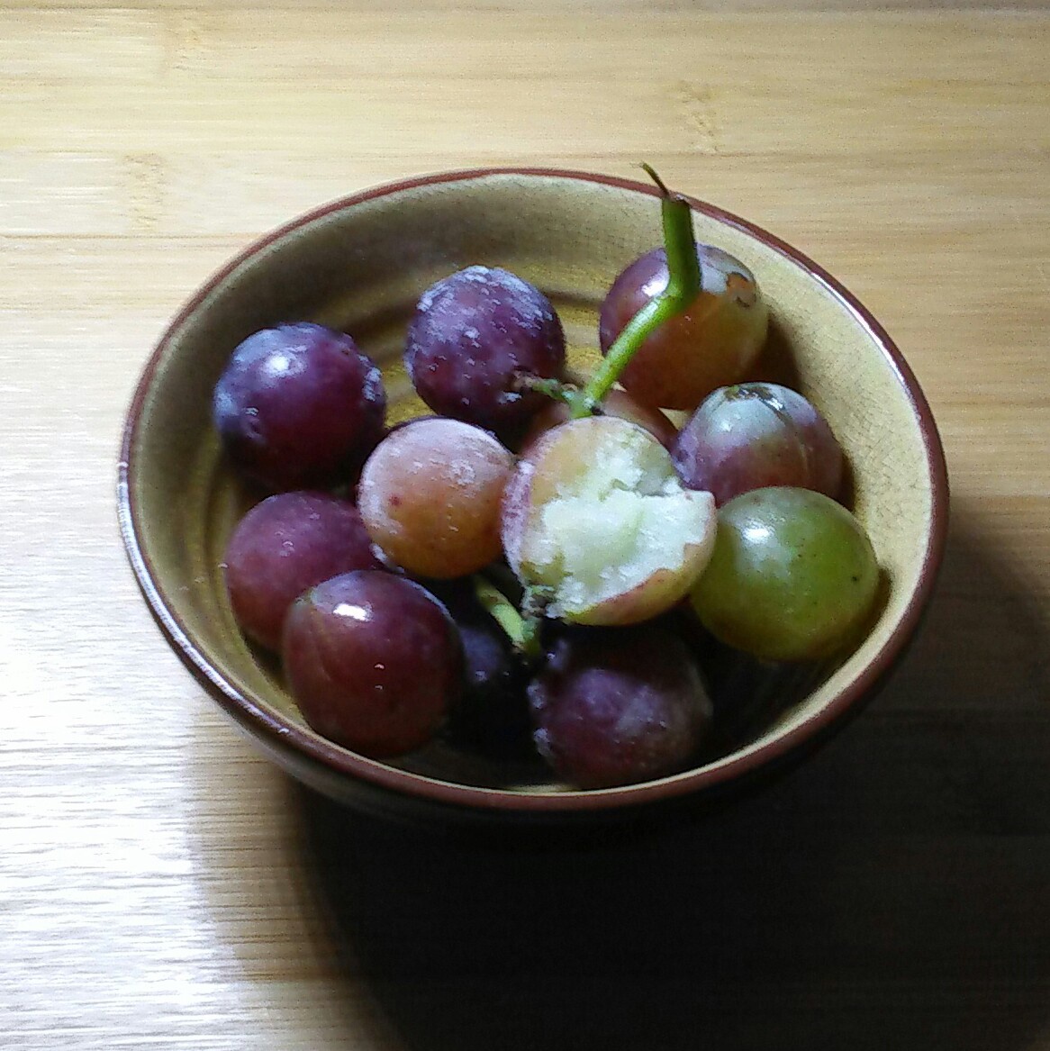米炭拌沙拉 做过 冻葡萄 冻了四个小时最后还是忍不住了_(:з)∠)_拍拍照装装盘有一些已经变软了sad本来是随意做的小零食被妈妈看见以后吃光了2333冻葡萄樱桃这种要冻硬了才好吃,口感很像冰激凌XD让我再去冻一碗去233#晚餐•2015年8月13日# 2015-08-11