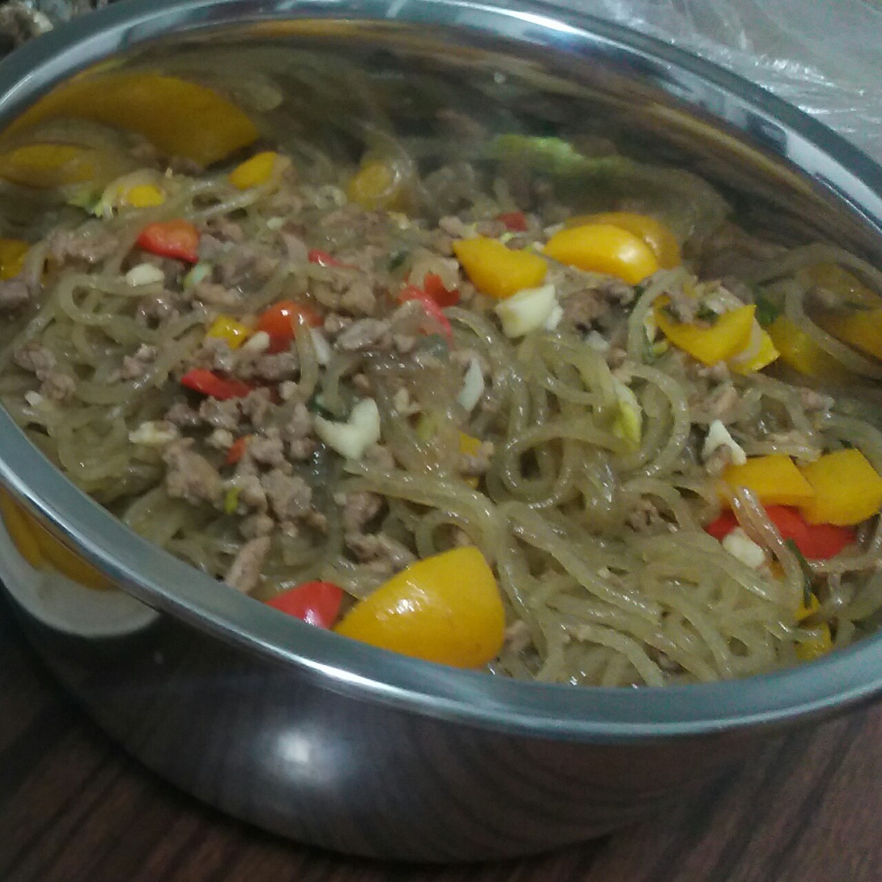 放了点彩椒点缀,颜值还是蛮高的,味道也不错!下次可以放点老抽上色!~