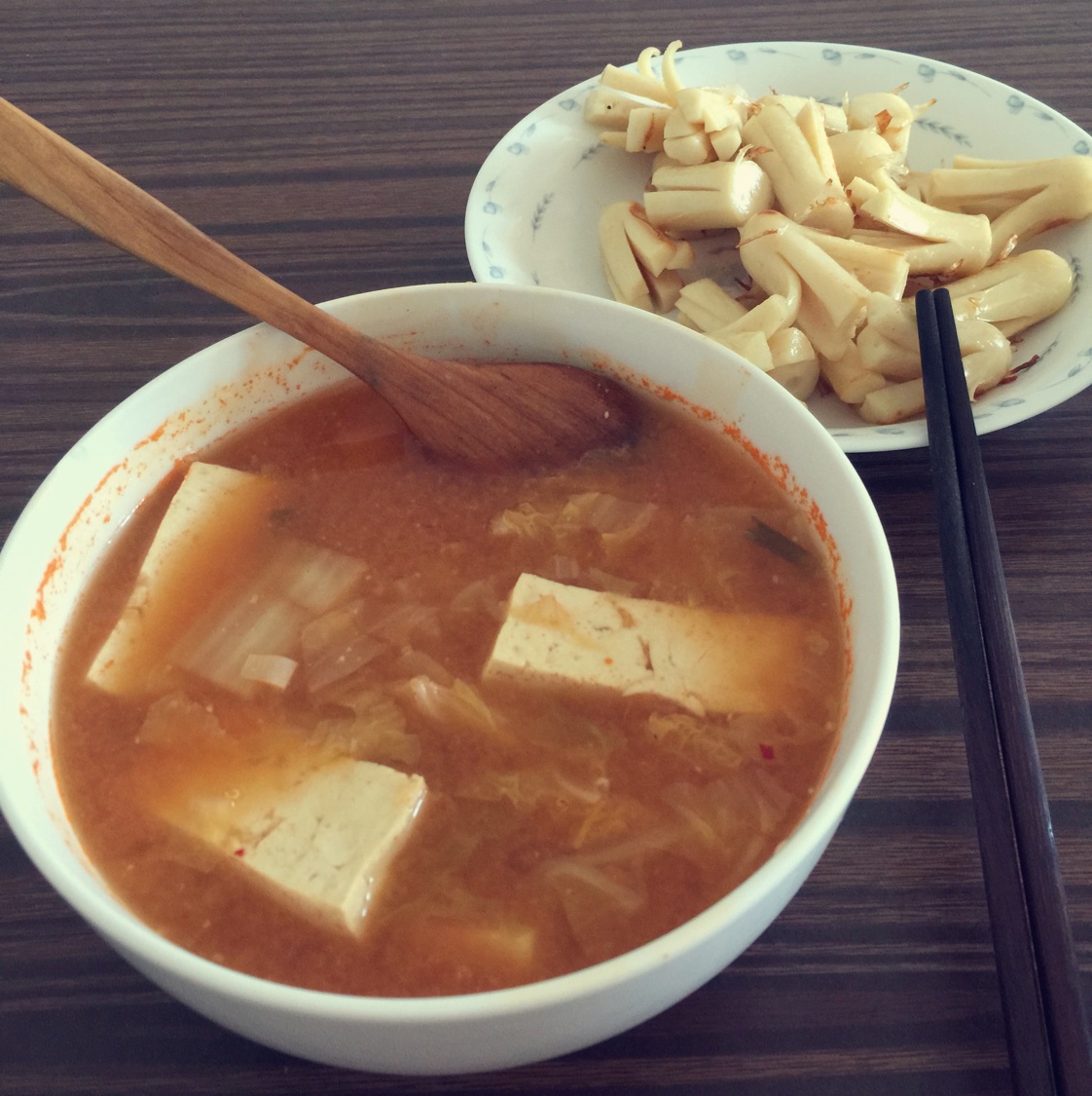 放了n多味增的泡菜汤~好喝~