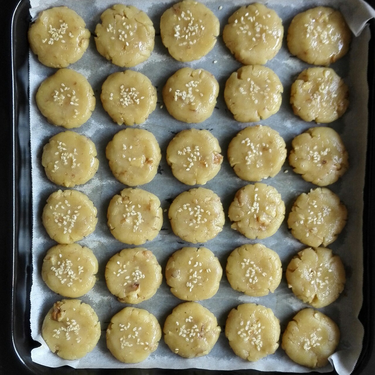 这是烤之前的,充分利用烤盘,排列紧密些。