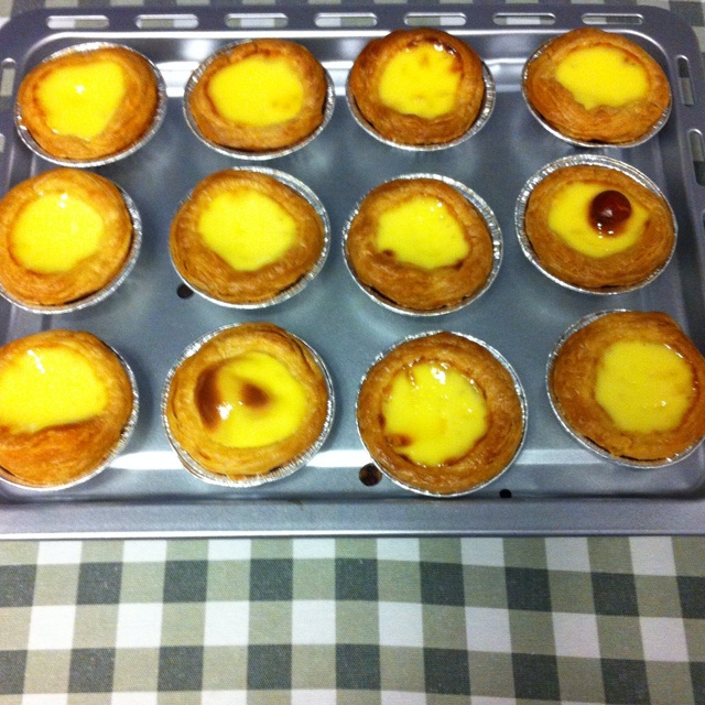 感觉25分钟还不够,特别是关了上管以后,但是这样烤有个好处,整个蛋挞皮都焦焦的,好香!儿子吃了不肯停!