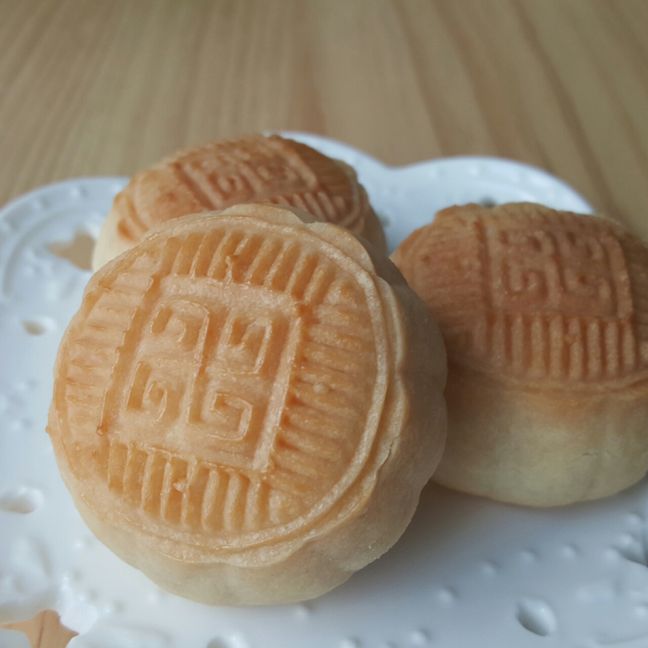 水里的鱼131103 做过 奶黄月饼 刚出炉酥得掉渣,想切半个拍内馅图,切了3个都一切就碎。觉得吉士粉成分复杂,直接忽略不放,烤出来是小清新的颜色,咬一口是浓浓的黄油香味,忽略热量的话的确很好吃!#晚餐•2015年8月23日# 2015-08-23
