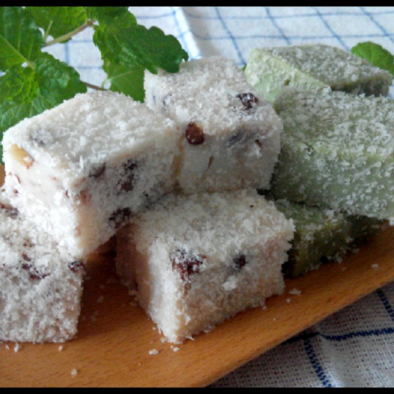 蜜豆、抹茶双色鲜奶椰蓉小方