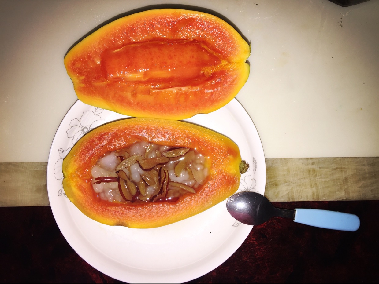 今天的晚饭…木瓜炖雪蛤…吃完了要多做运动了…呵呵…