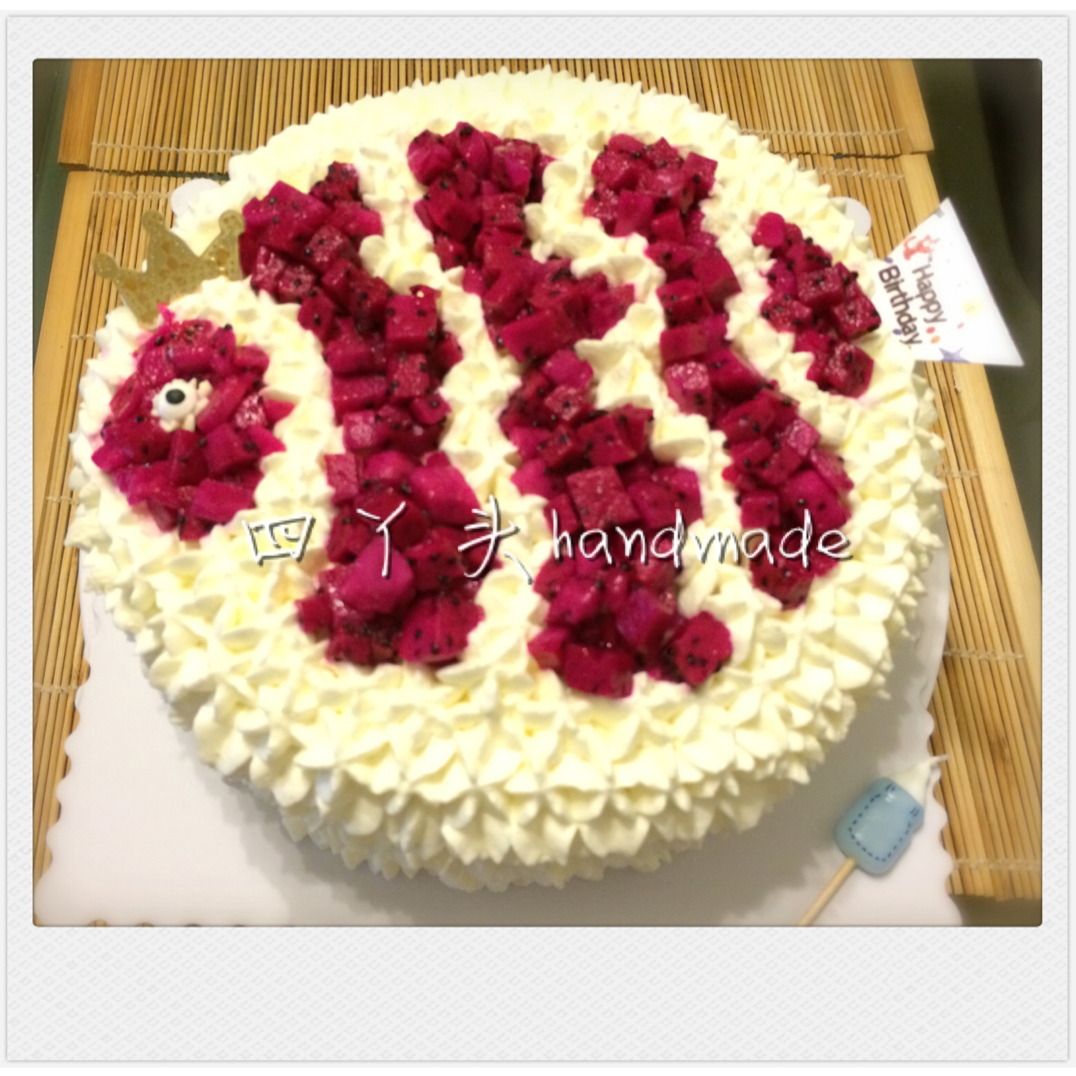 Jenny_LXP 做过 四丫头私房手工记录 山的异品小筑的创意,这款蛋糕真棒,很喜庆,今天太赶时间,下午才开始烤蛋糕胚,晾冷脱模抹面裱花造型,一气呵成,5点完工,目前最快手的一个蛋糕^_^ 2015-09-01