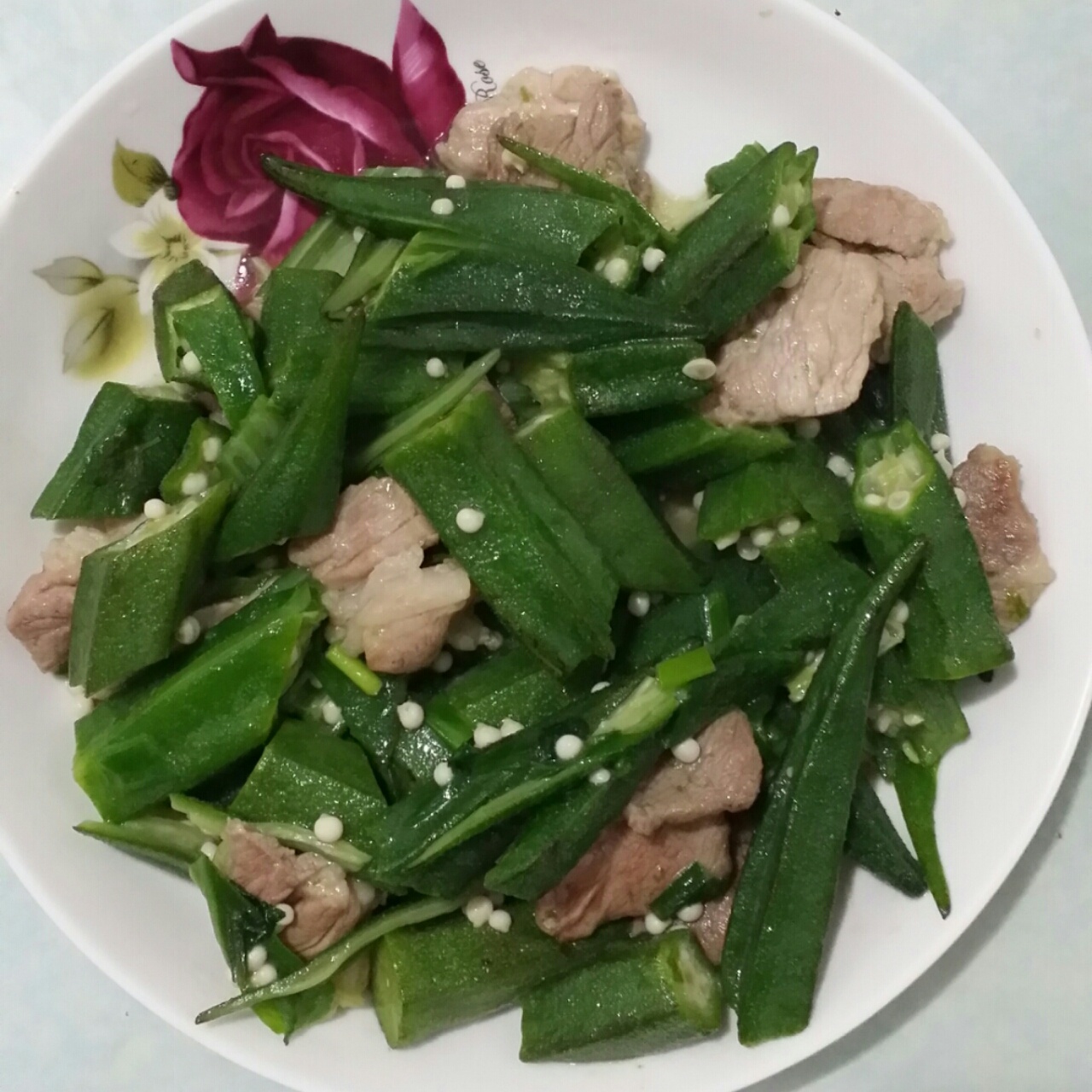 肉末炒秋葵