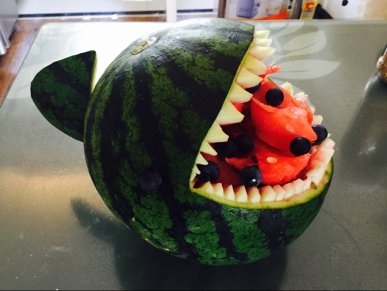 超级酷炫的鲨鱼西瓜雕