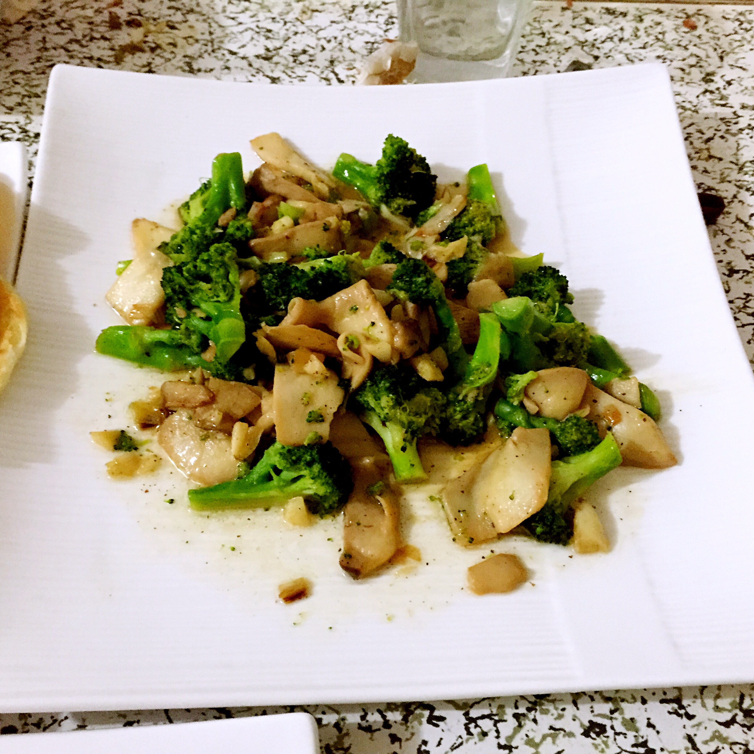 西兰花炒杏鲍菇…杏鲍菇好几天了…放了点黑胡椒,还行…