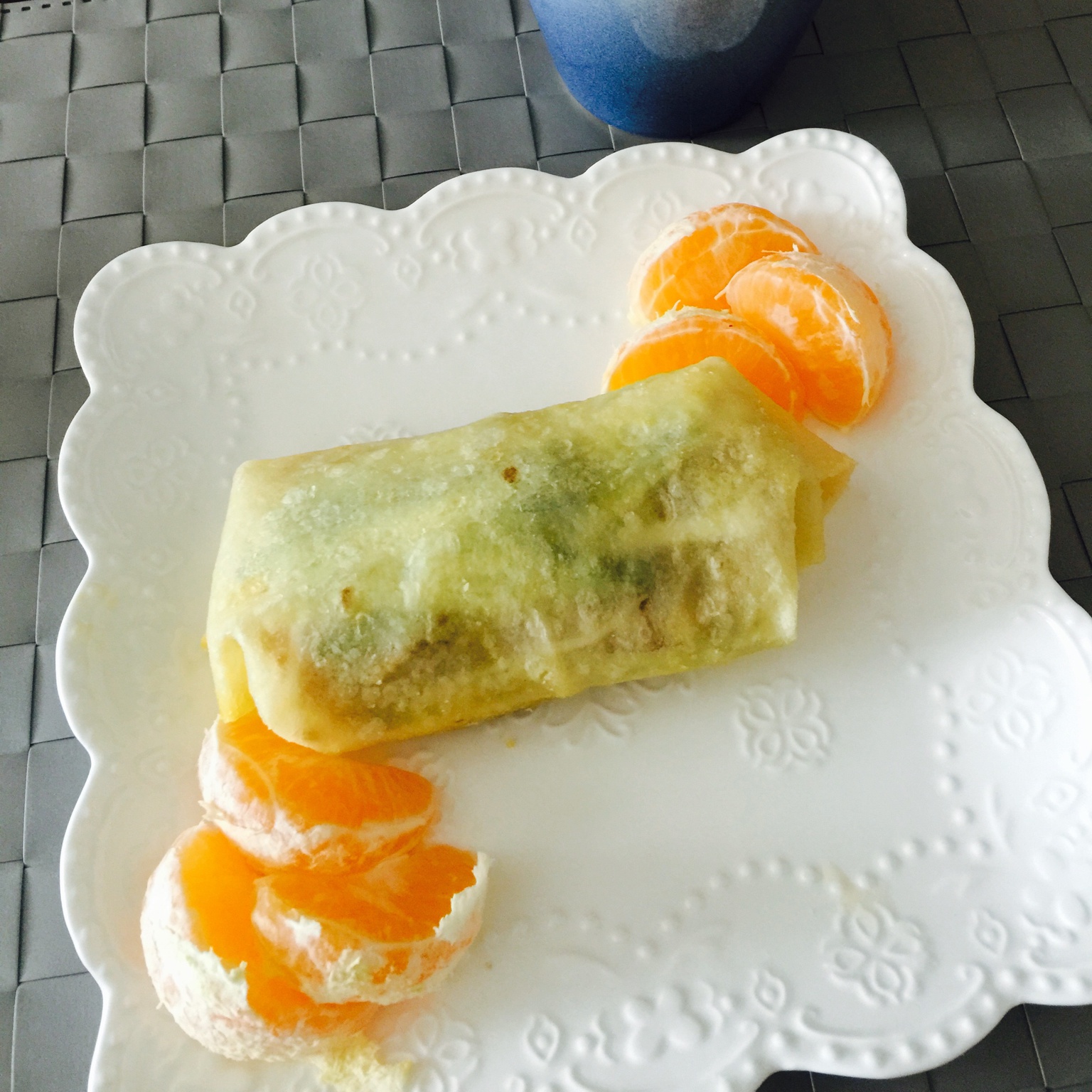 这是属于早餐吧!鸡蛋黄瓜卷。