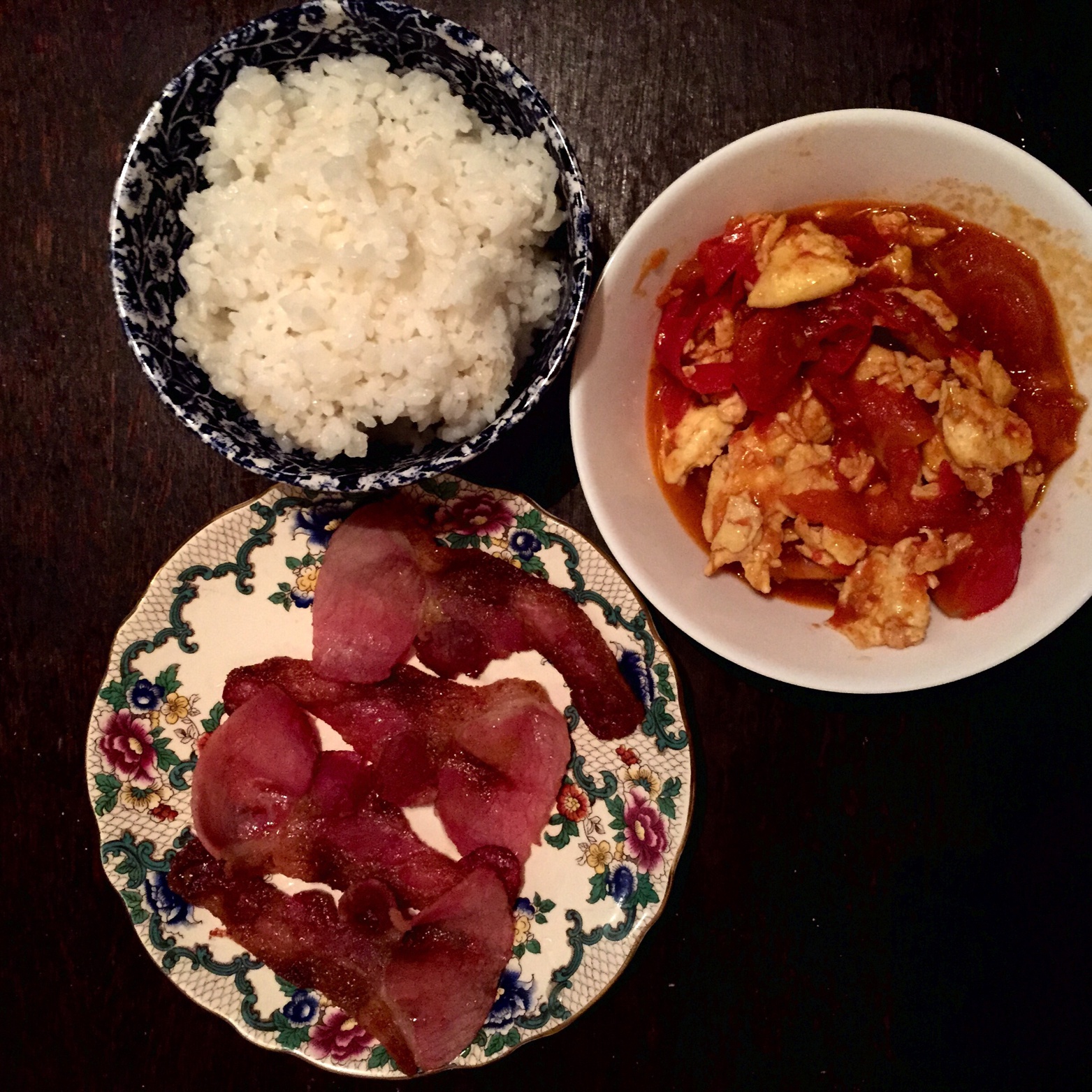 简简单单的晚餐。前两天剩下的肉片和孜然一起烤好香~