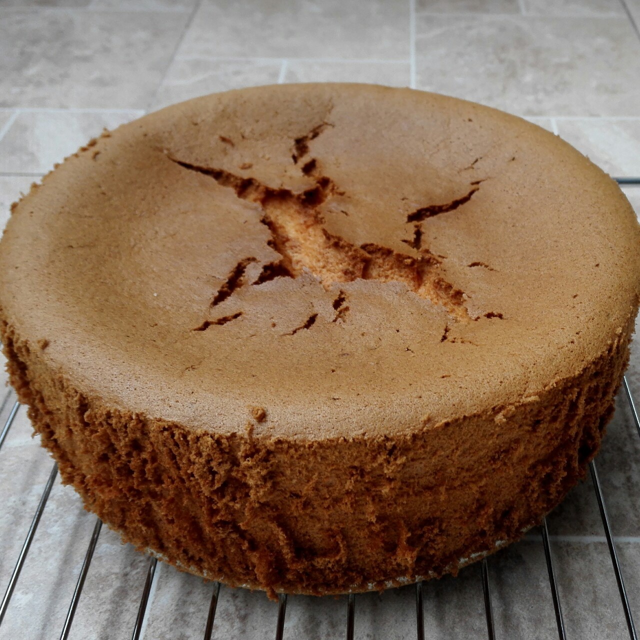 换成了这个方子,还是开裂,凹陷。已经烤了65分钟,颜色很深了,中间似乎还有点没熟透。