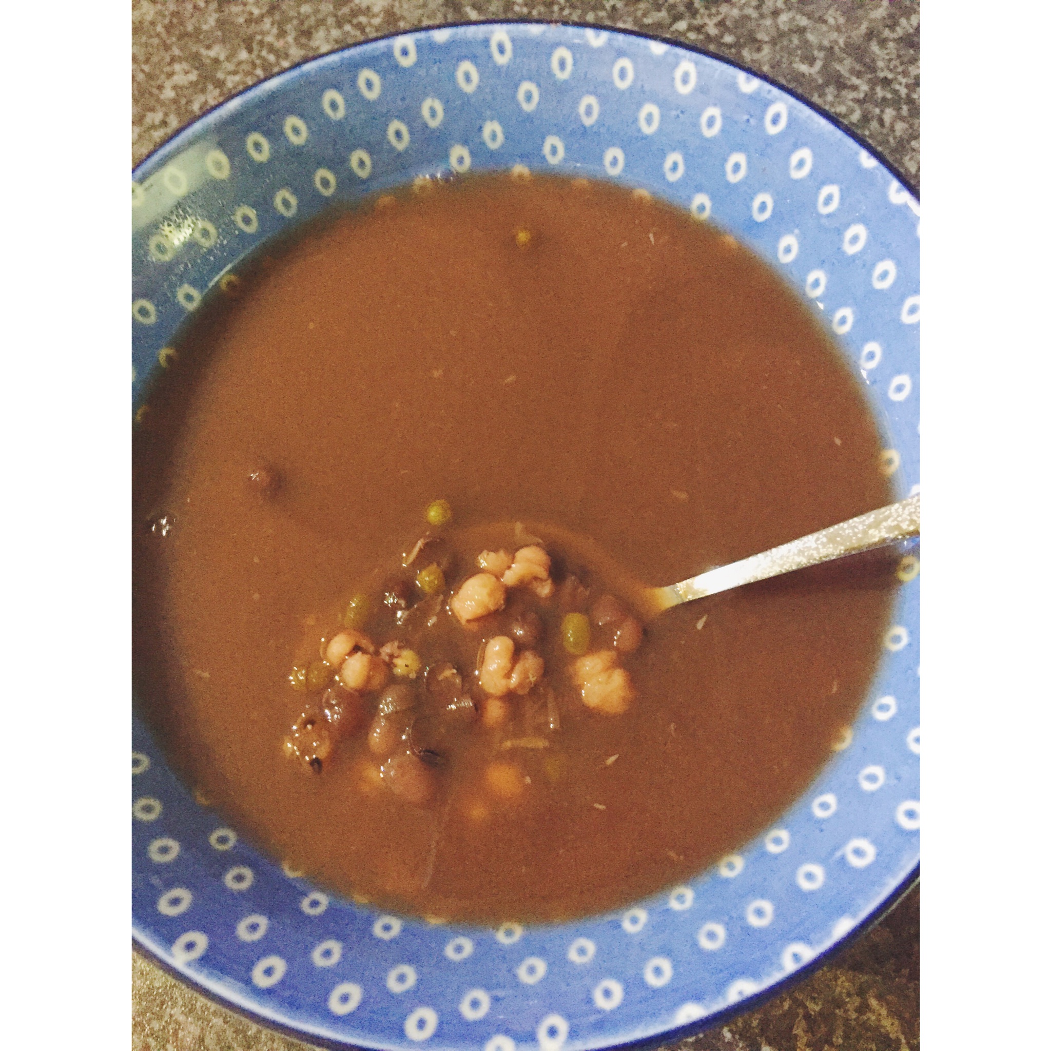 终于!感人!糊在电饭煲锅底两次之后第三次终于成功!红豆绿豆薏米汤~