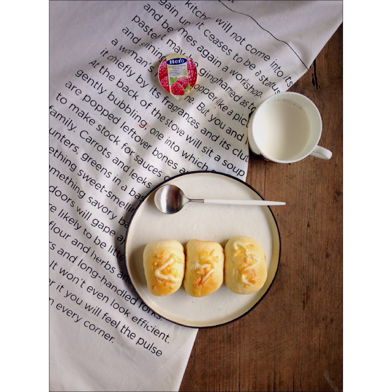 早上要出门,吃的很简单,小面包+牛奶~