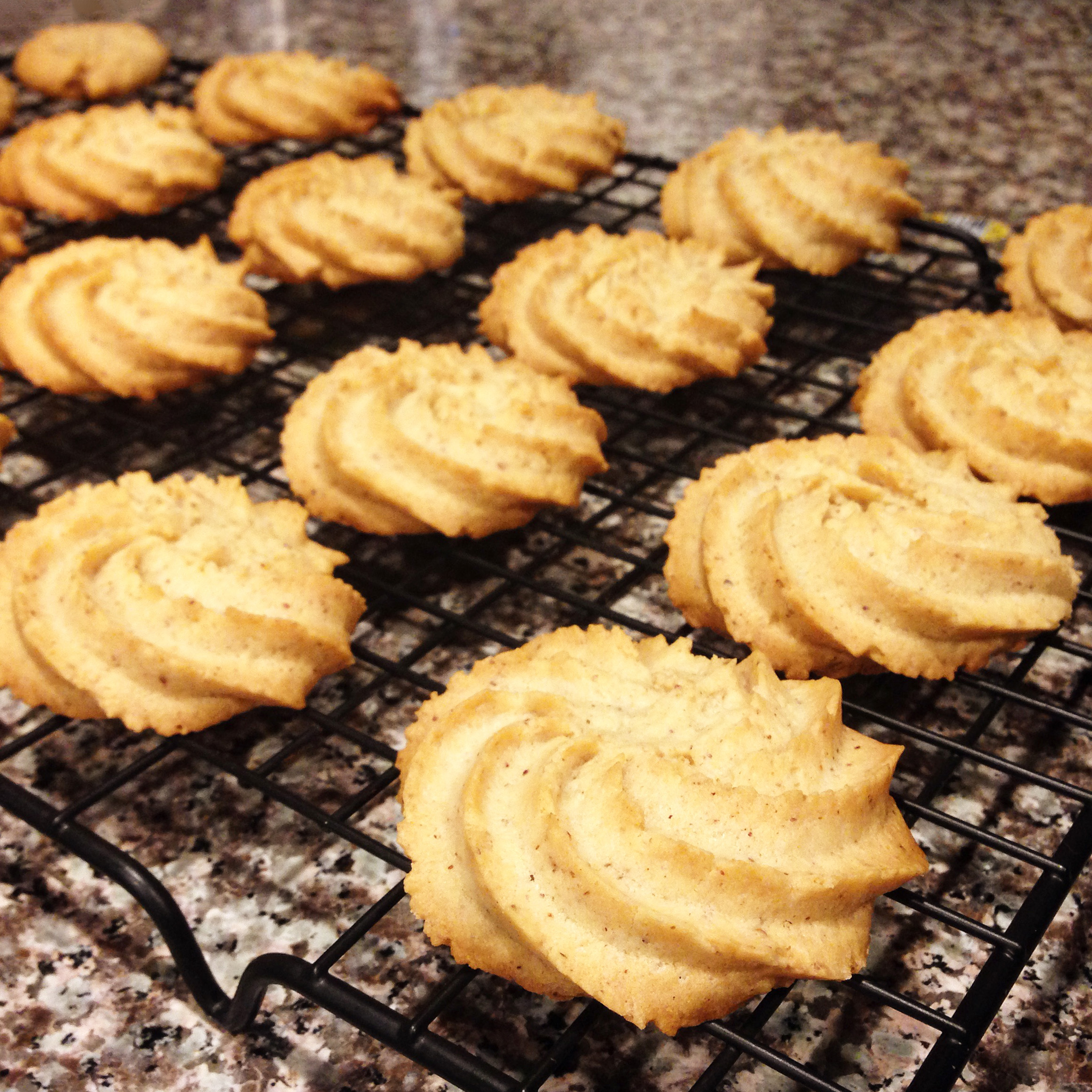 用的这个方子,花生酱换成杏仁酱,挤了花,还挺好挤的。不过还是花生酱的饼干好吃,杏仁酱做成饼干后就没有什么突出的味道鸟。