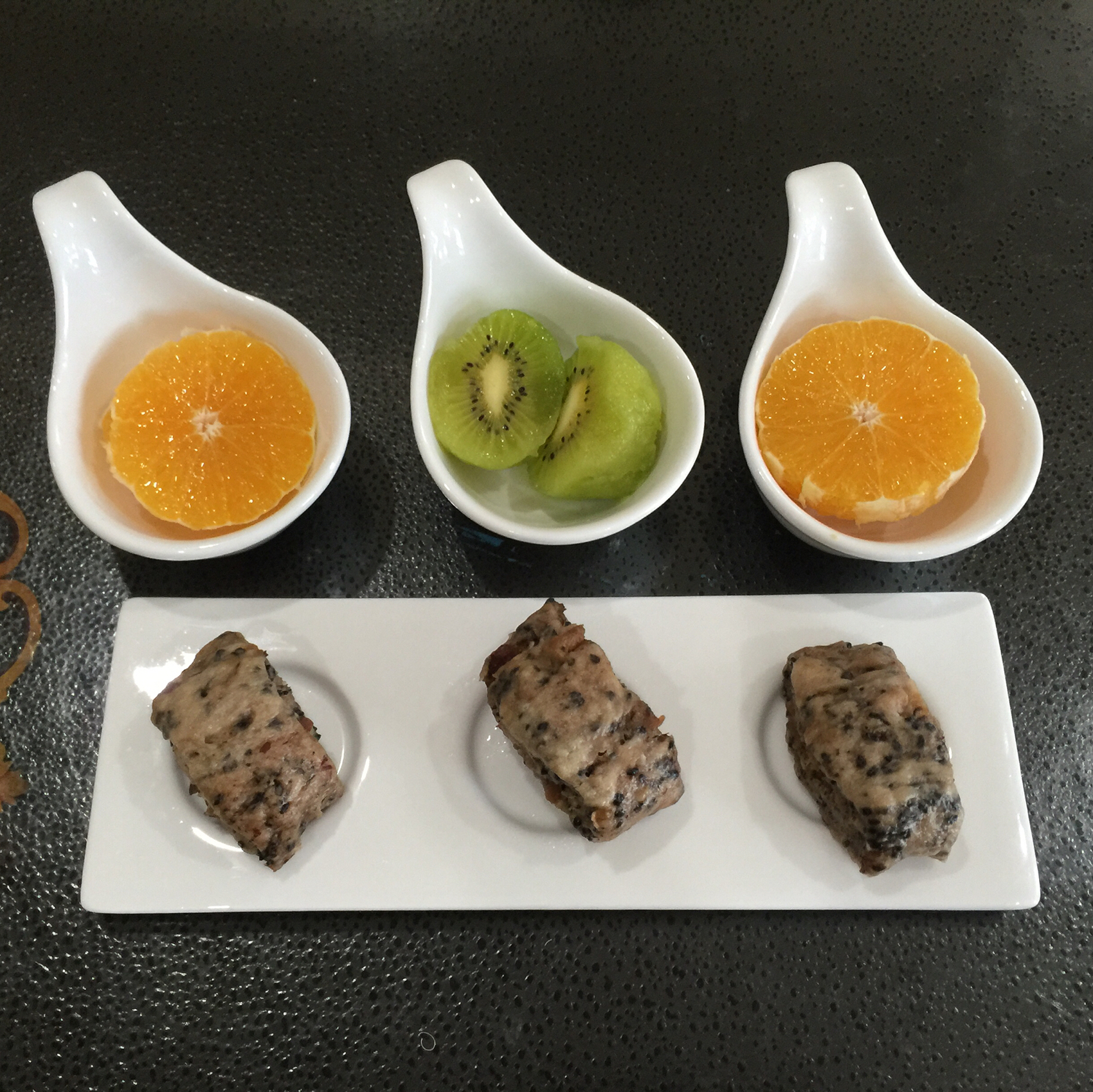般若波罗蜜1 做过 早餐•2015年10月31日 瑞宝早餐:粗粮面包+橙子+猕猴桃+小米薏仁粥。今天的粗粮面包绝对有料,放了满满的核桃、红枣和有机黑芝麻,一口咬下浓郁的芝麻香伴随着核桃肉的脆感及红枣香甜味带给味蕾的强烈甜蜜感,此时弥漫于心的是满满的幸福感[愉快][愉快] #早餐•2015年10月31日##早餐# 2015-10-31