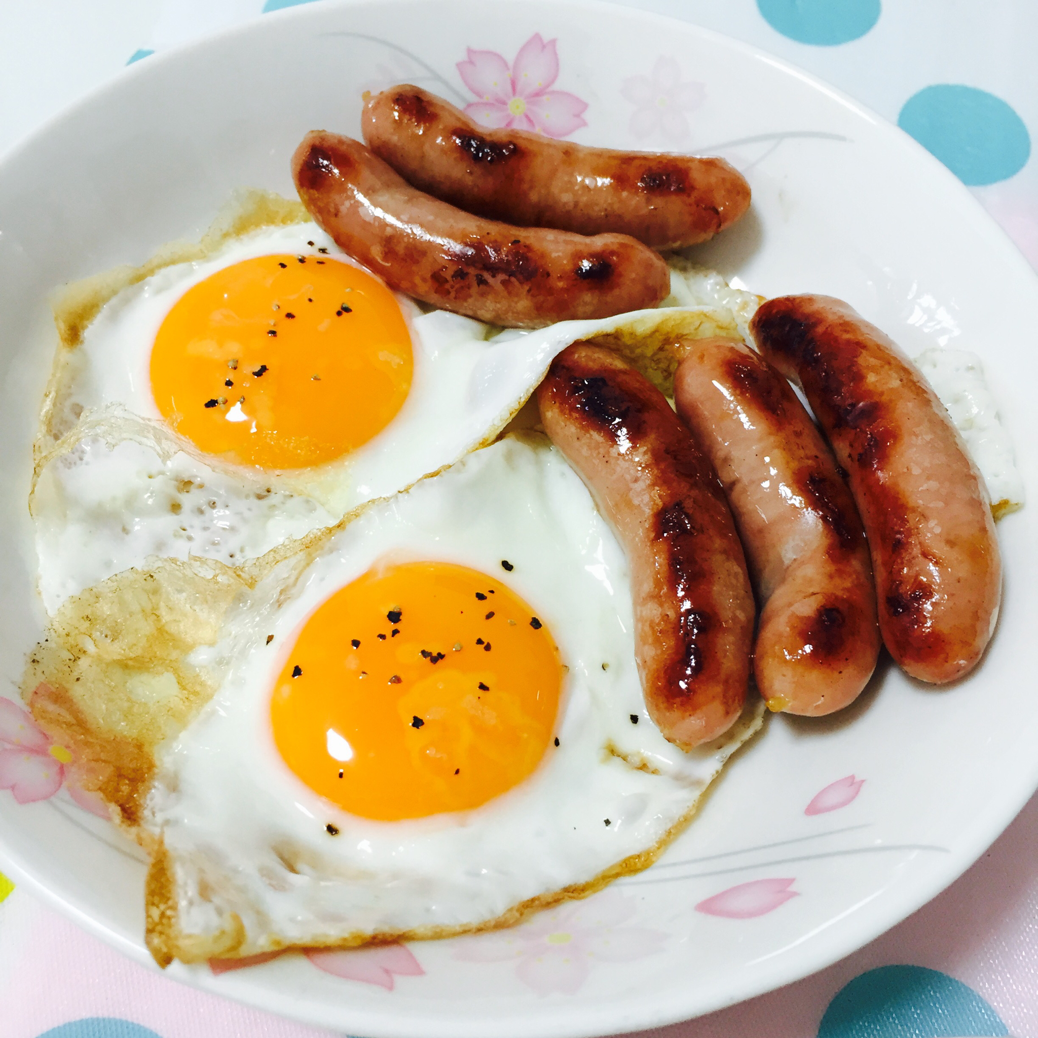太阳蛋+煎香肠~不是绝配是什么?tell me!!!