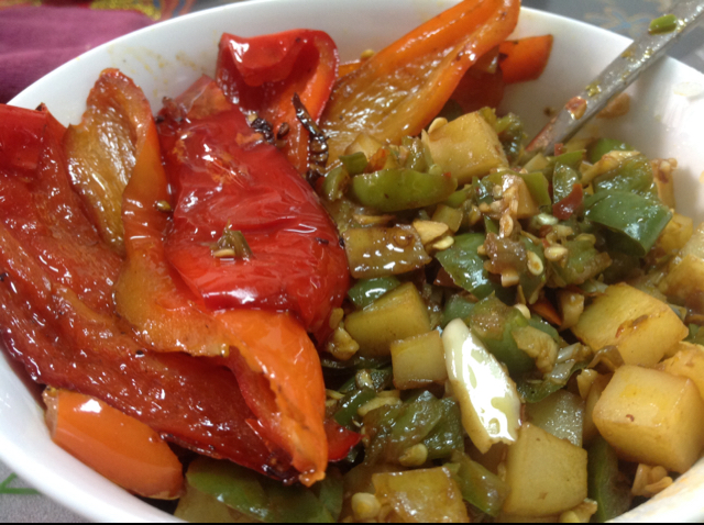 小土豆,煎红辣椒