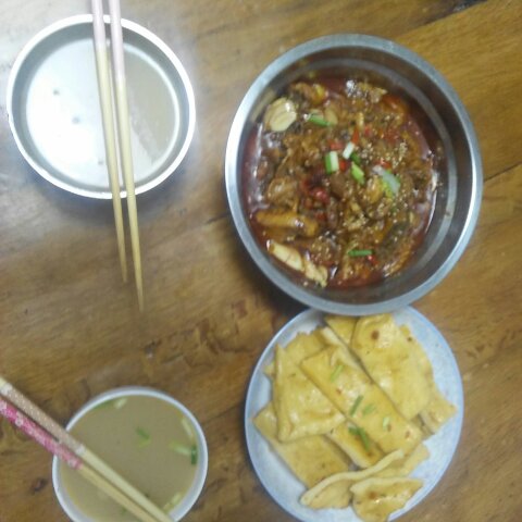 瓦块鱼和小饼,加鱼汤,(手工巧克力水果蛋糕)