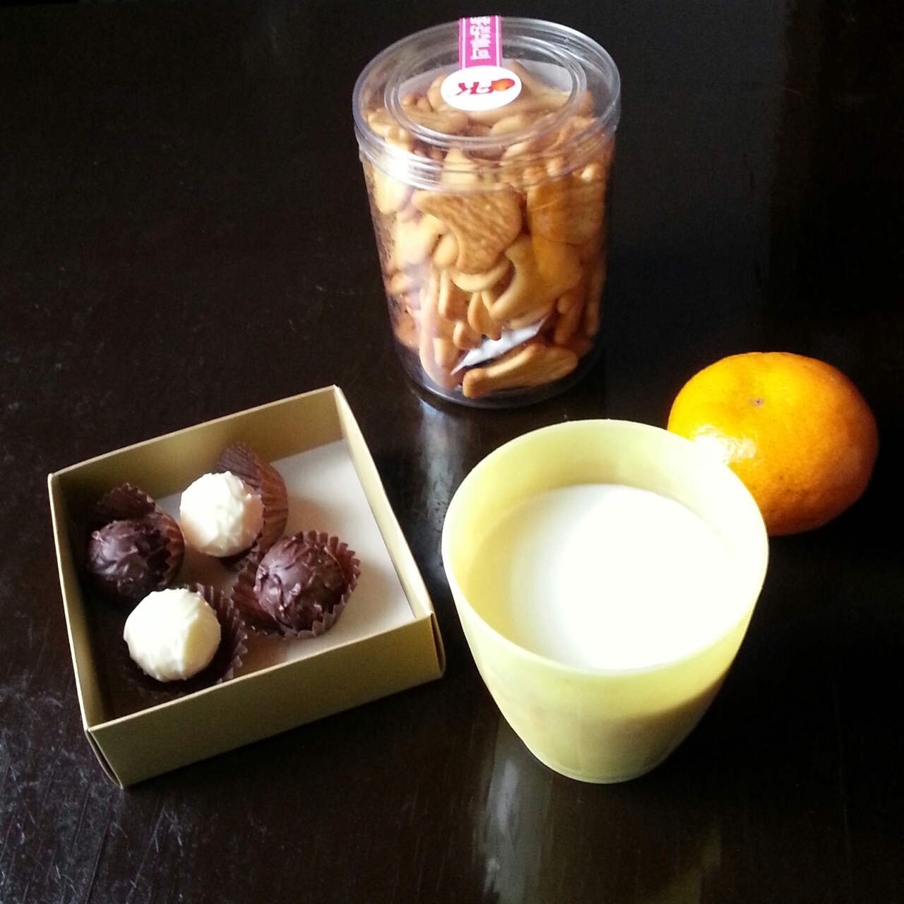 女儿喝了一杯牛奶,吃了一个巧克力,一罐饼干和三个桔子带去学校和小伙伴们一起吃,送她上学刚刚到家,赶快来下厨房看看