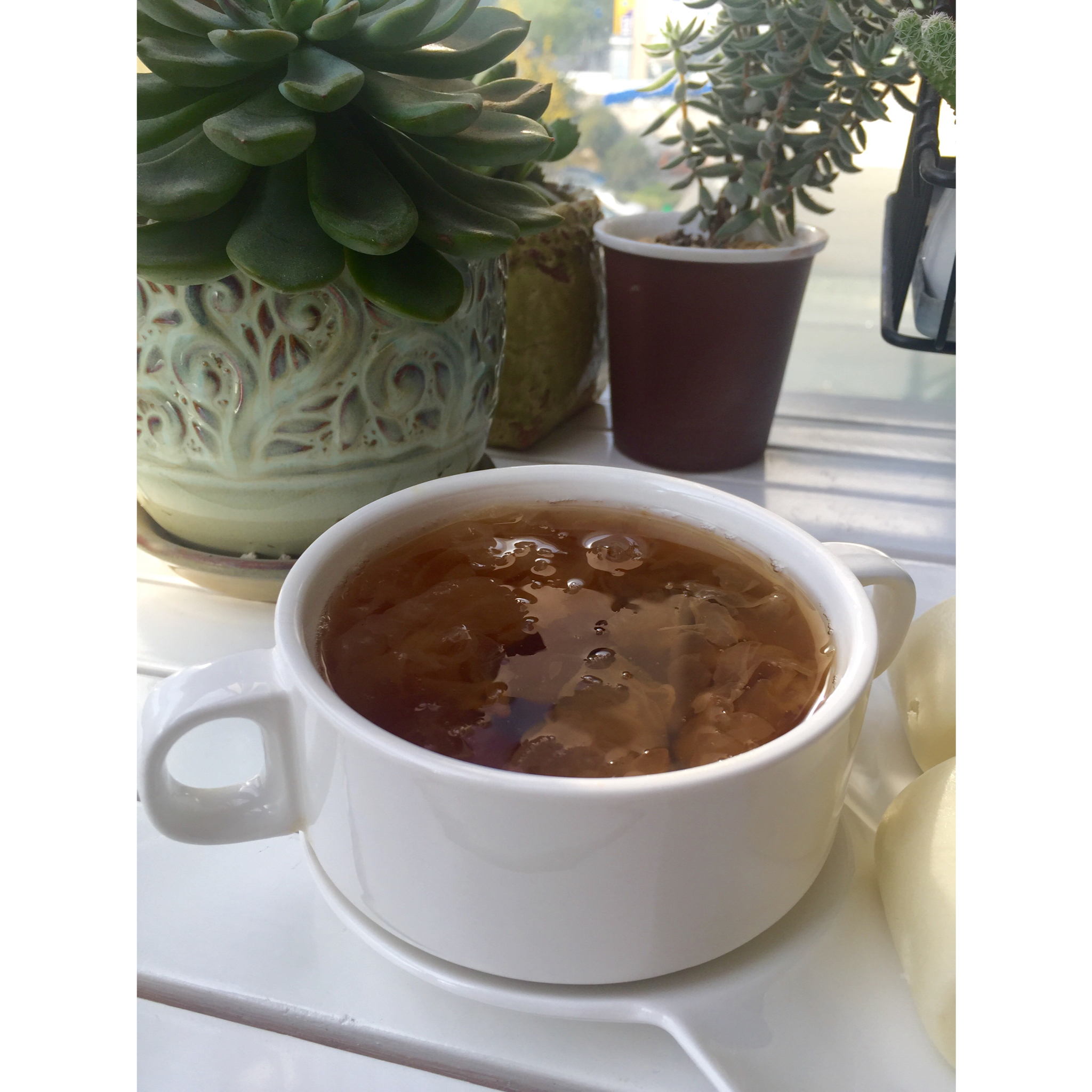 燕窝和桃胶都炖成水了