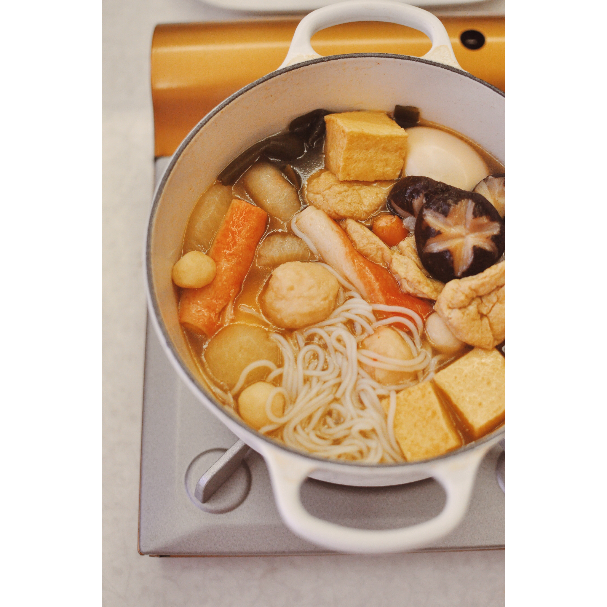 关东煮食材吃剩一半时,下点米粉,真好吃,好入味。