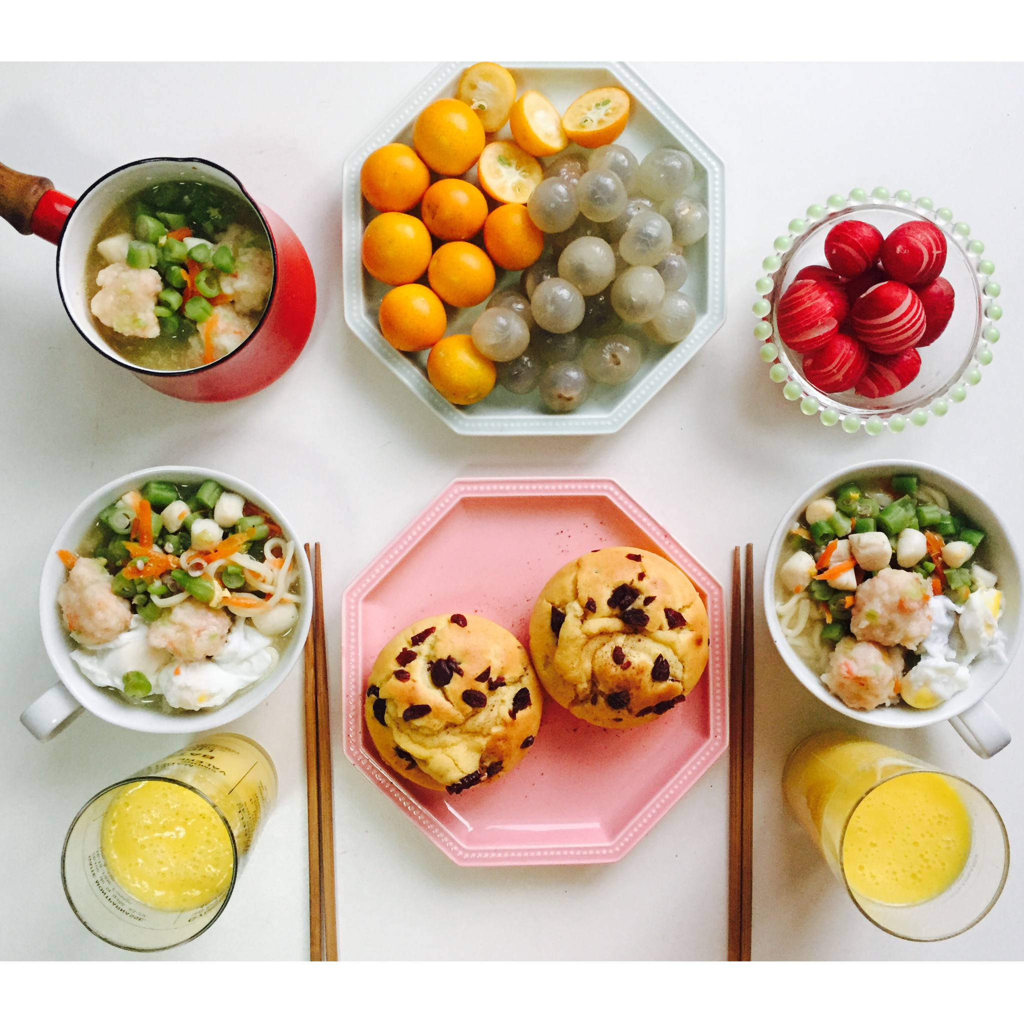 手打虾丸打卤面、蔓越莓玛芬