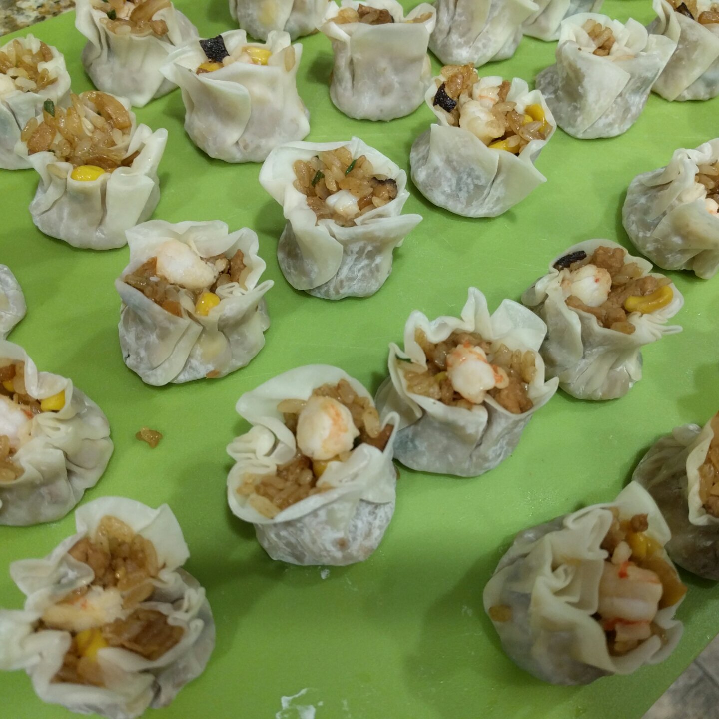 香菇,笋丁,玉米,虾仁在最后糯米饭混合匀了再放的。随意加了老抽生抽蚝油和盐。包法真的很棒不罗嗦。谢谢方子。