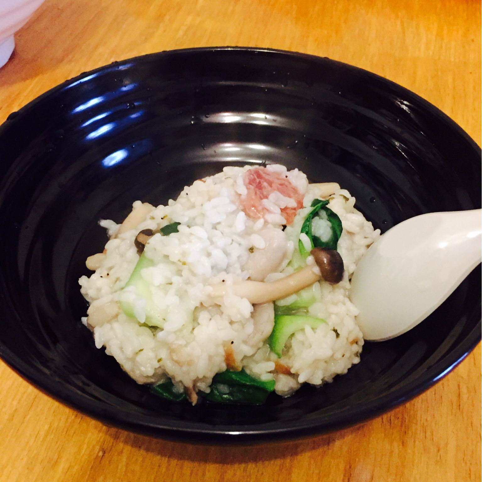 三鲜烩饭(香肠芋艿青菜蟹味菇)。