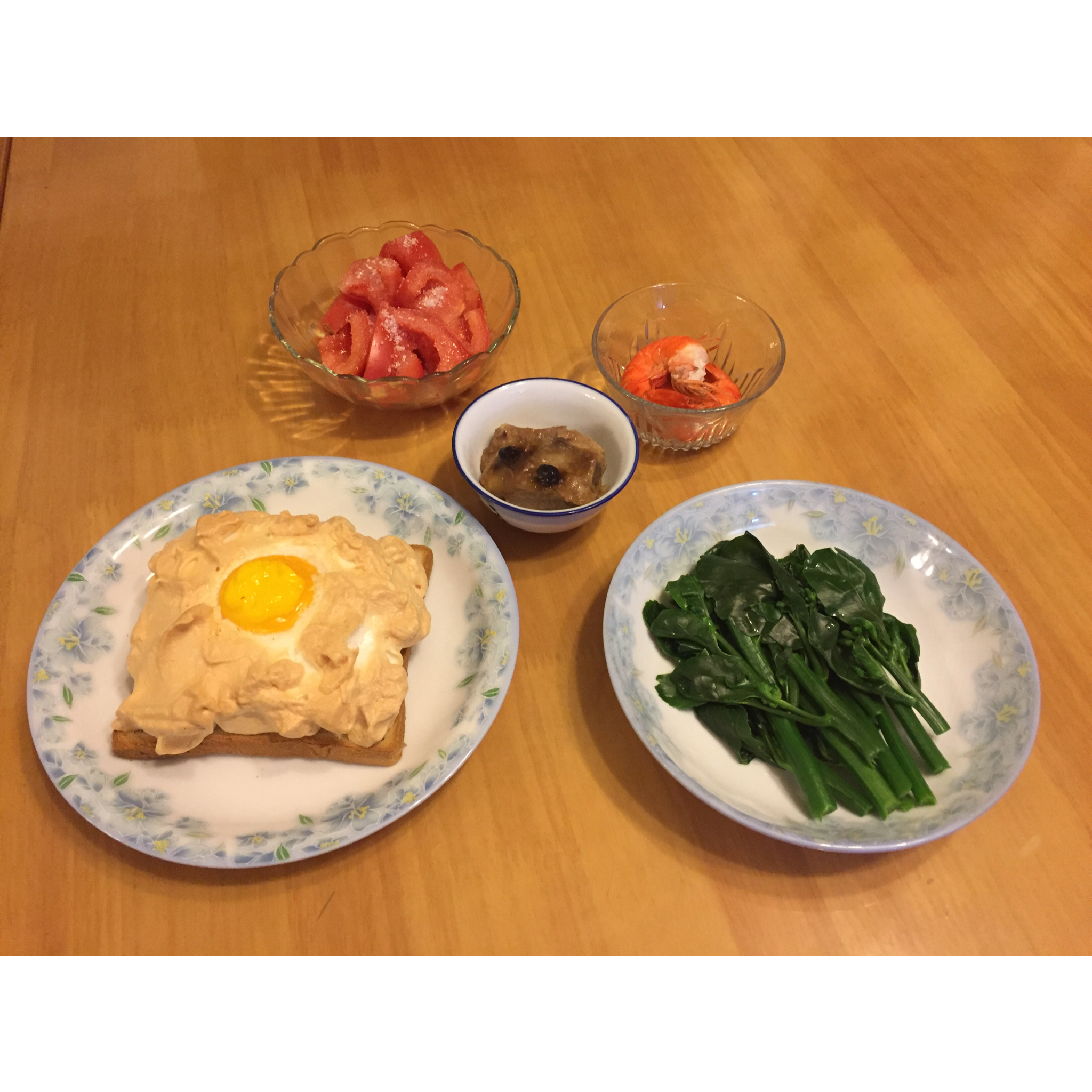 火烧云吐司,水煮菜,水煮虾,糖番茄,排骨^_^
