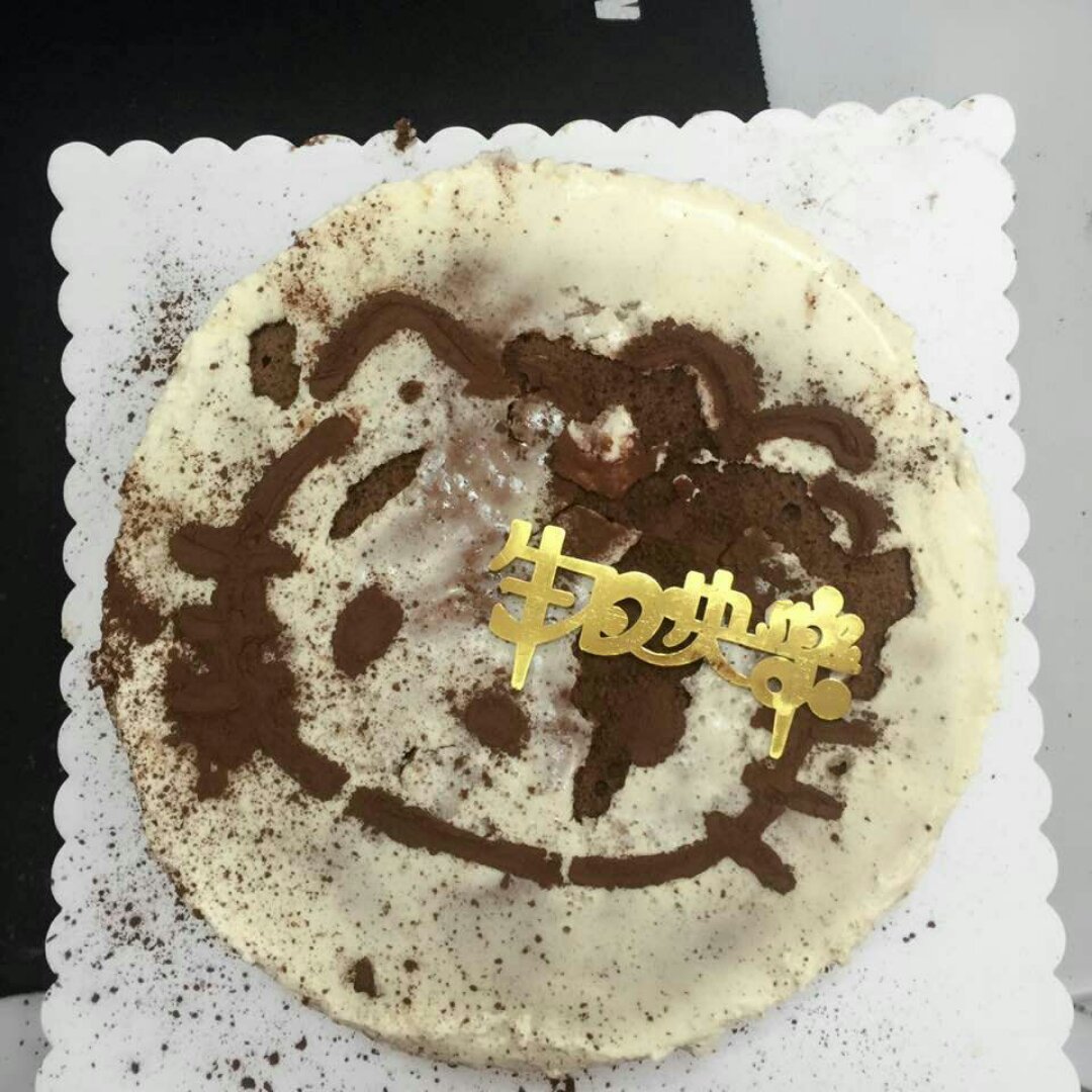 手抖有点花脸了。第一次做。给同事的生日蛋糕!大家都说很好吃