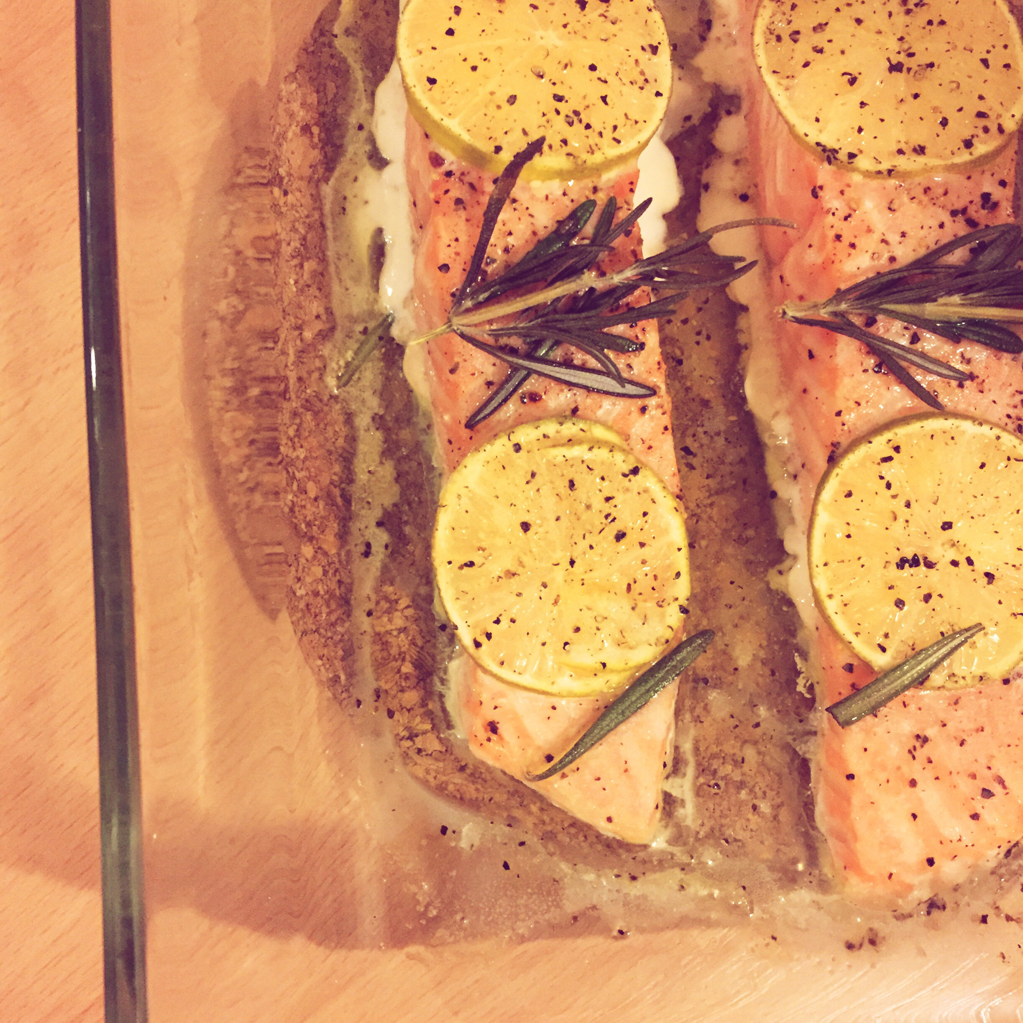 吃啥料理 做过 晚餐•2015年12月29日 慢烤三文鱼,昨晚临睡前随口一说的菜芒果爸今晚就给出了完美作品~有天赋的“大厨”大概就是这么棒吧~三文鱼撒盐、黑胡椒粉,淋橄榄油,铺上柠檬片、迷迭香,180℃烤15分钟 #晚餐•2015年12月29日# 2015-12-30