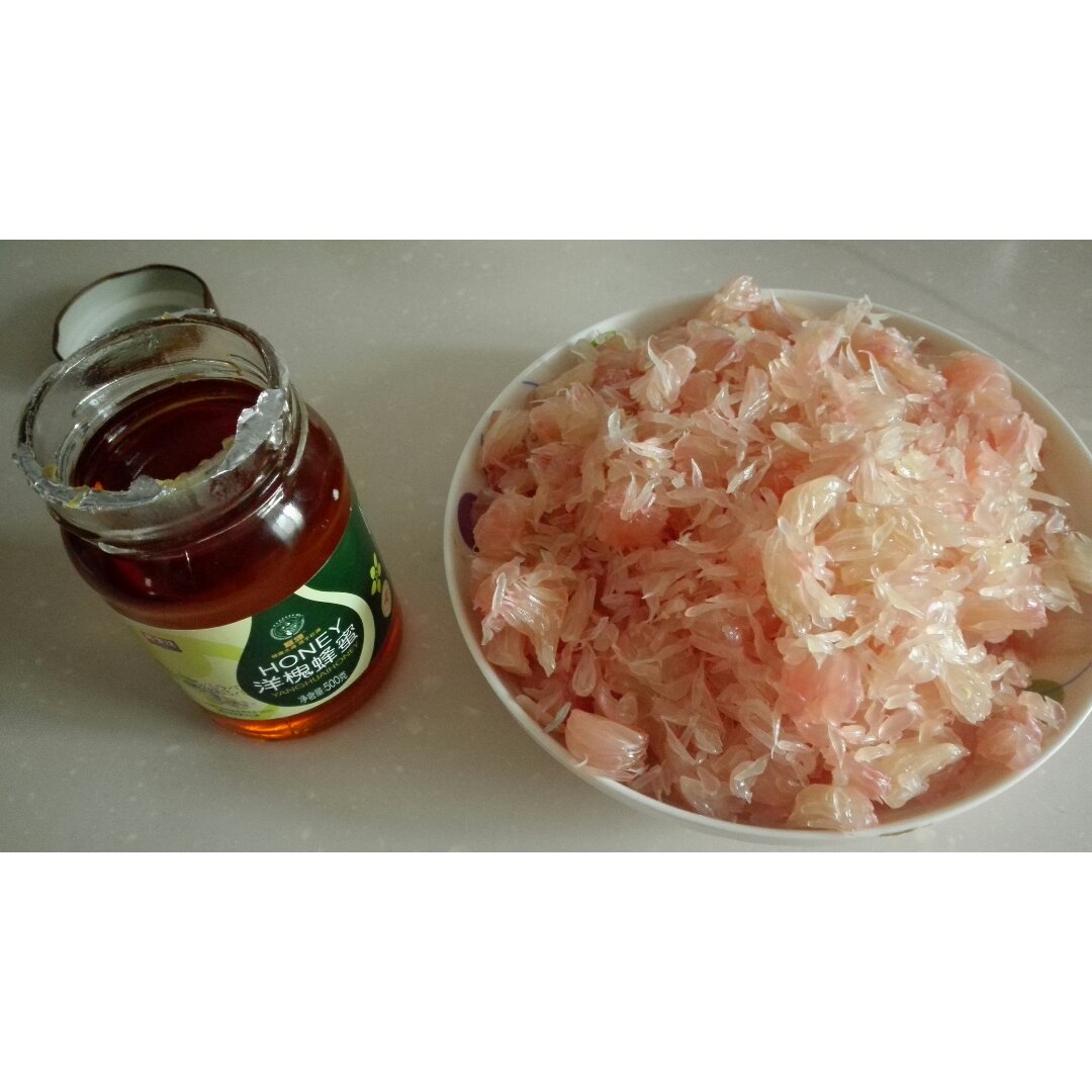一个红柚做了大小两瓶蜂蜜柚子茶,期待几天后开吃