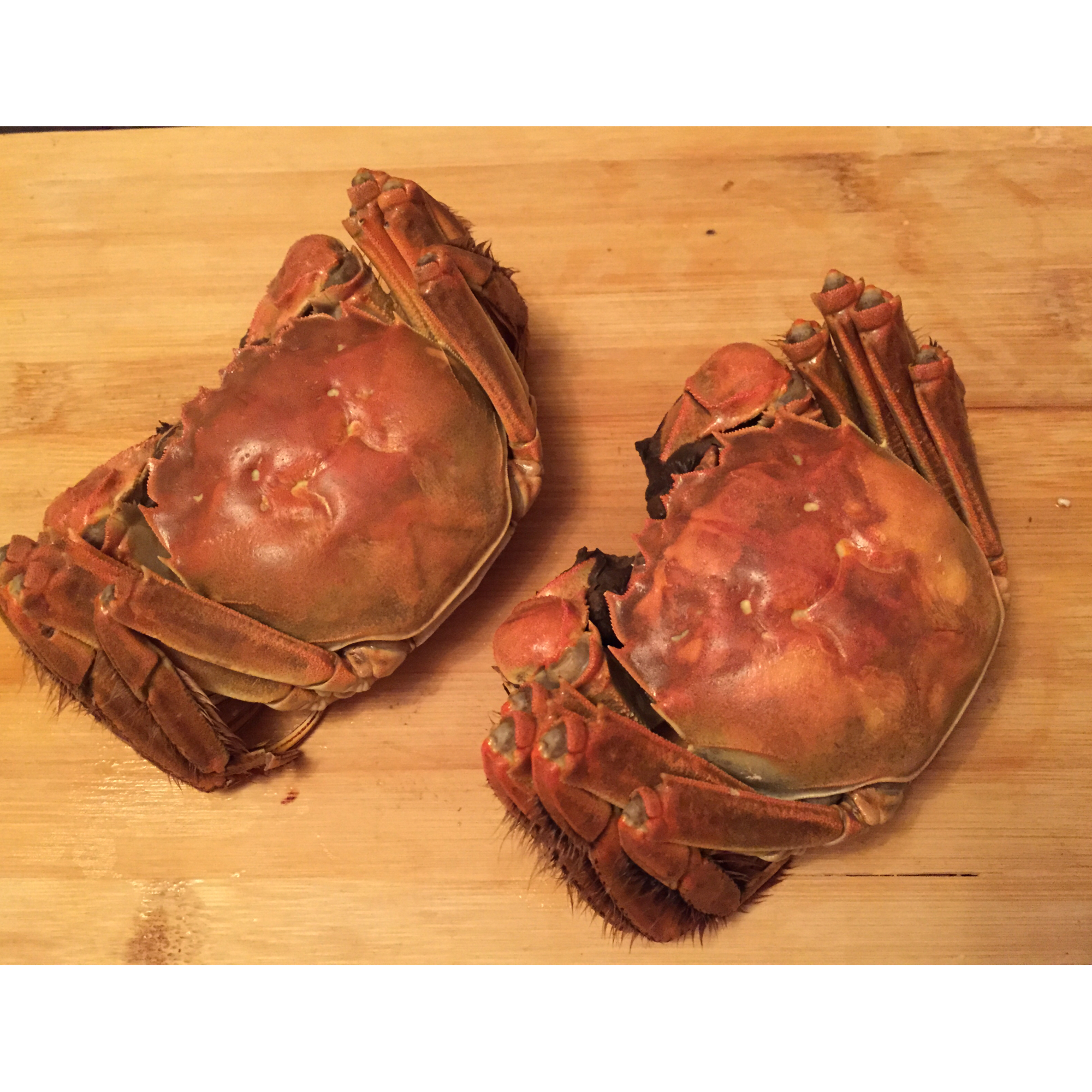 昊昊头 做过 清蒸大闸蟹 这是去年的蟹券,今年才领来吃。去年怀孕,说不能吃,太寒,会流产的。其实这都是没有知识的人说的。如果吃大闸蟹会流产,那么就不要做流产手术了,医生开几个大闸蟹吃吃,即省力又解馋。所以,给那些怀孕中的准妈妈一句话:想吃就吃。但是作为一个牙医,要提醒:吃大闸蟹要用工具至少要用✂️和蟹叉,不然把牙齿咬裂了,那可是亏大了。 #晚餐•2016年1月1日# 2016-01-01