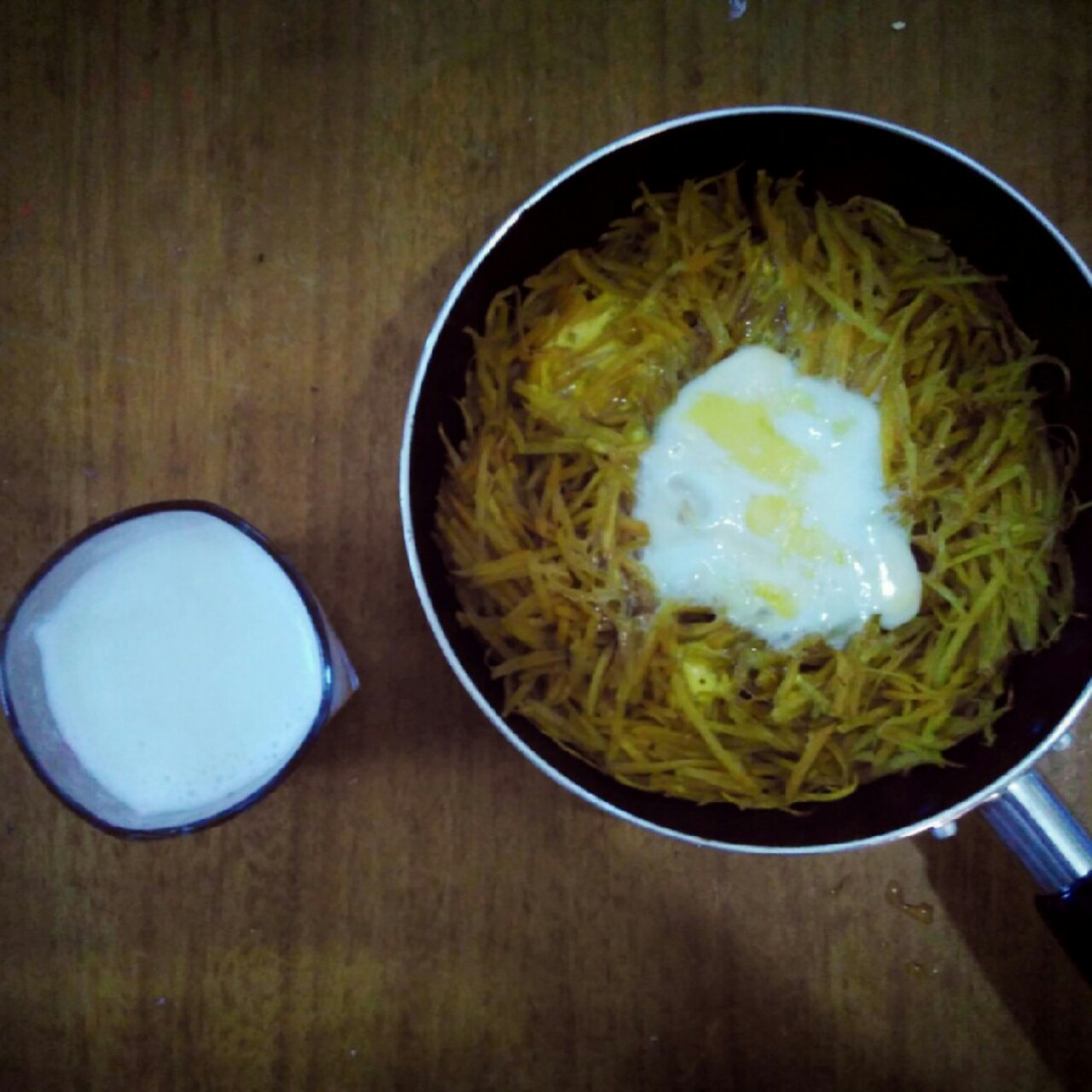 红薯鸡蛋饼,牛奶