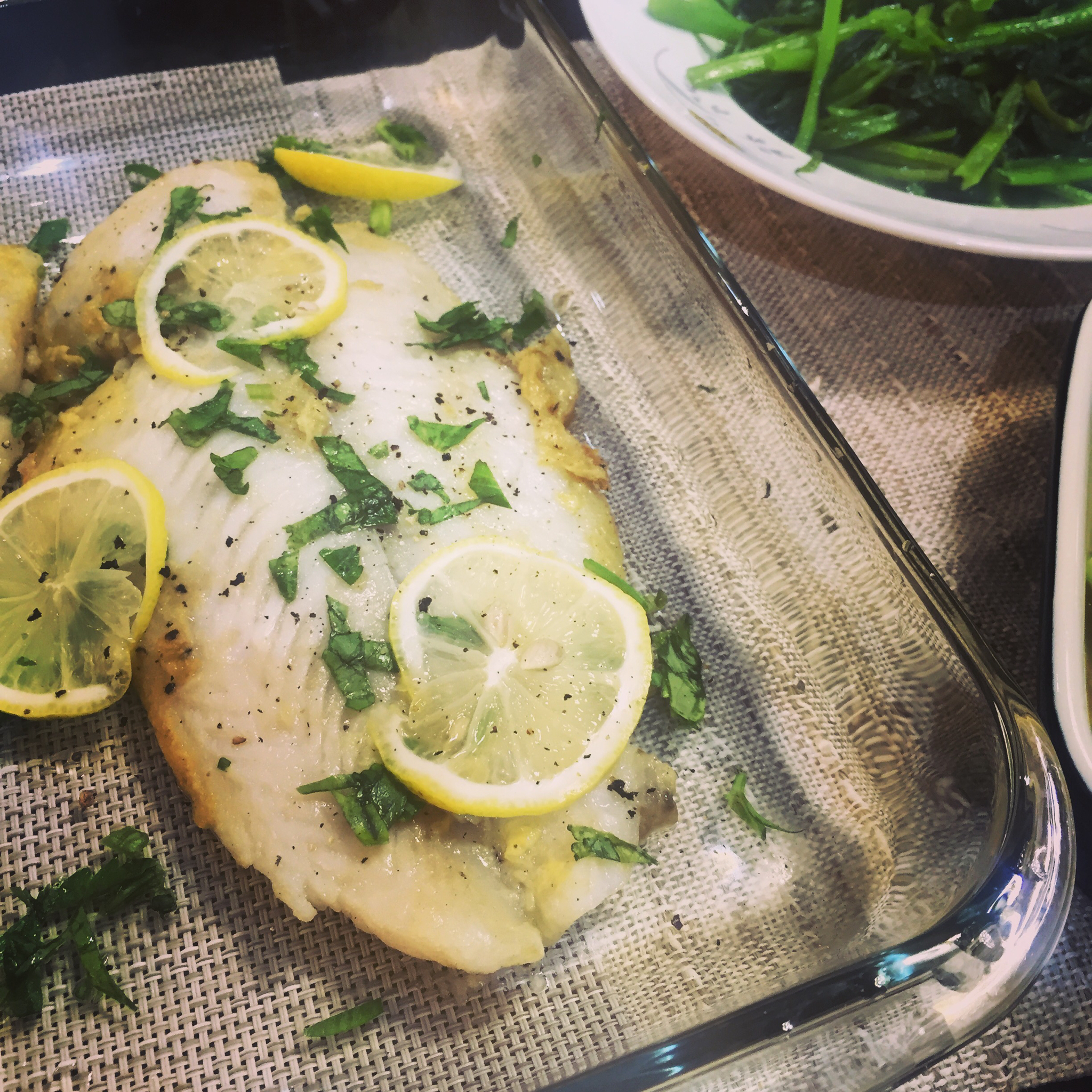 昨晚做的龙利鱼,然而容易冷。还是搭薄荷叶什么的味道好些~昨天的晚餐噢