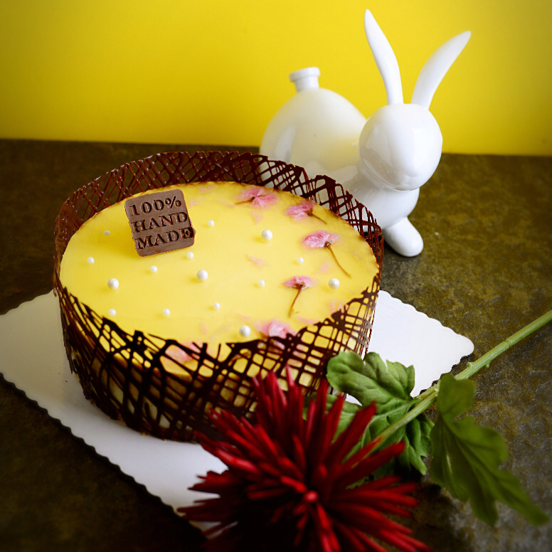 做完芒果慕斯淋面的时候突发奇想,冰箱里还有樱花,混搭了一下,有没有很貌美