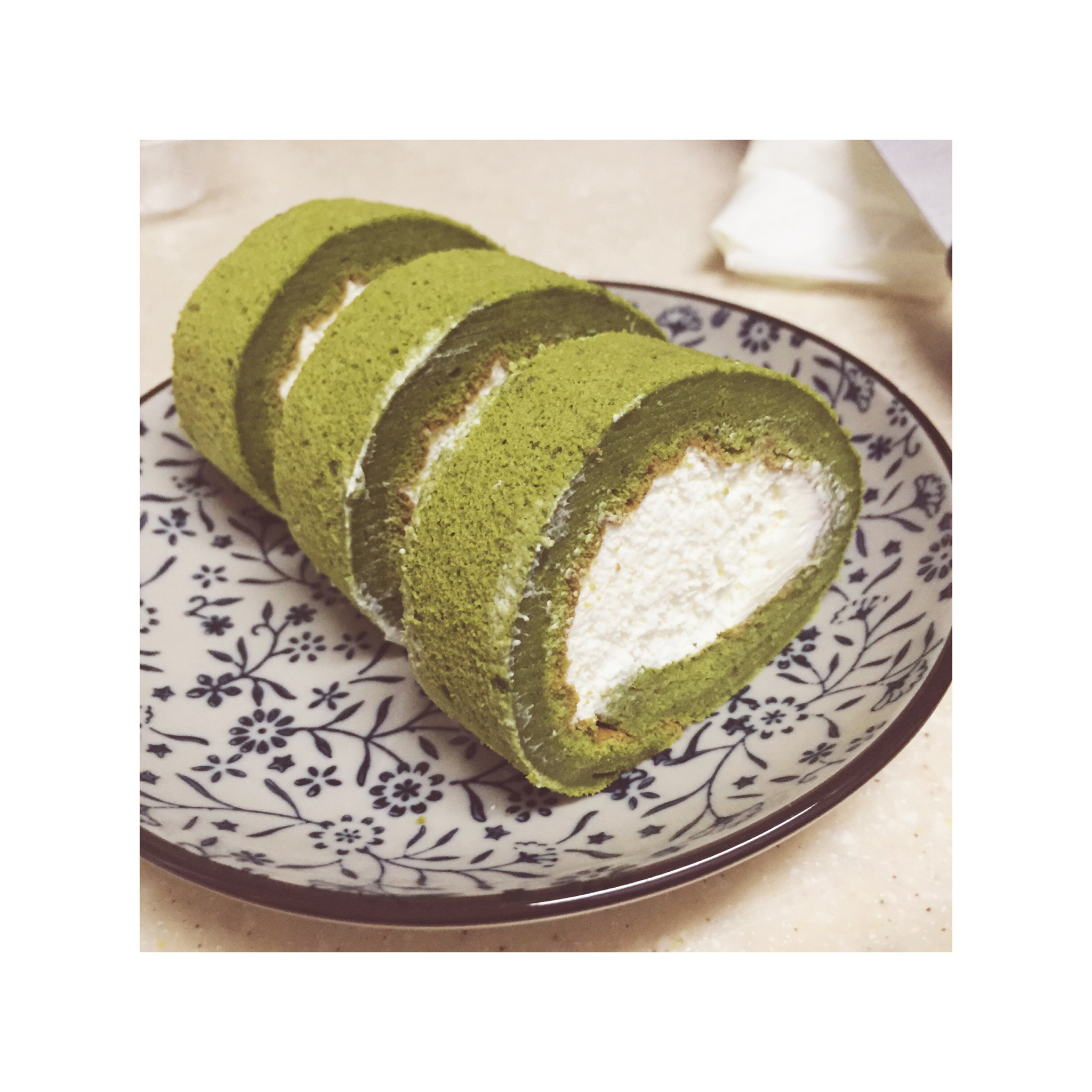 【抹茶卷】最近大概是爱上抹茶了,因为没有用28x28的方盘,做出的卷稍小,水加多了的缘故蛋糕有点塌,呃,好吃就是了~ #早餐•2016年1月6日#