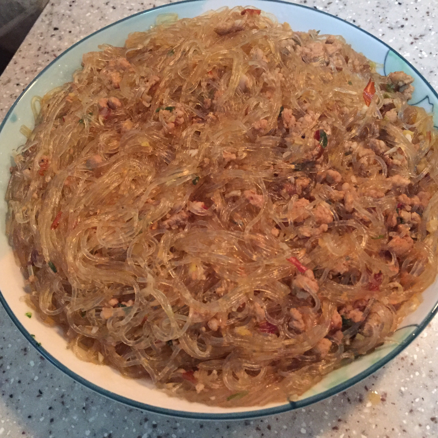 厨我所欲也 做过 老丁的私房菜-蚂蚁上树 豆瓣酱多了点,偏辣;酱油少了点,偏淡。形似,而味有差别矣~~(粉丝吸水,锅里的水很快就烧干了,烧的时候要留意) #晚餐•2016年1月11日# 2016-01-11