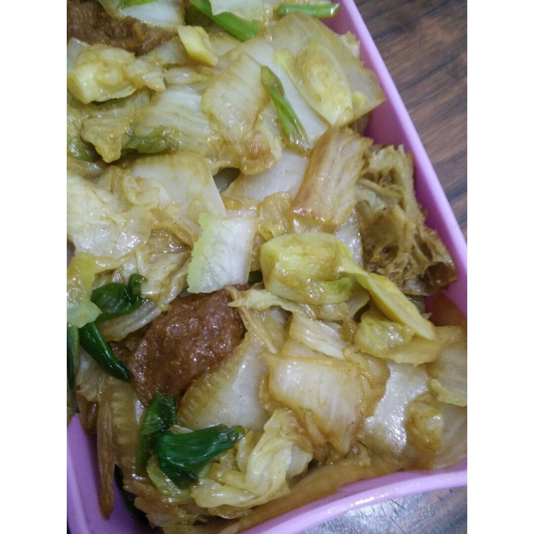明天中午带的菜,连准备到做熟共花了十分钟。白菜独面筋。上班真的好累。越到过年越心力交瘁。