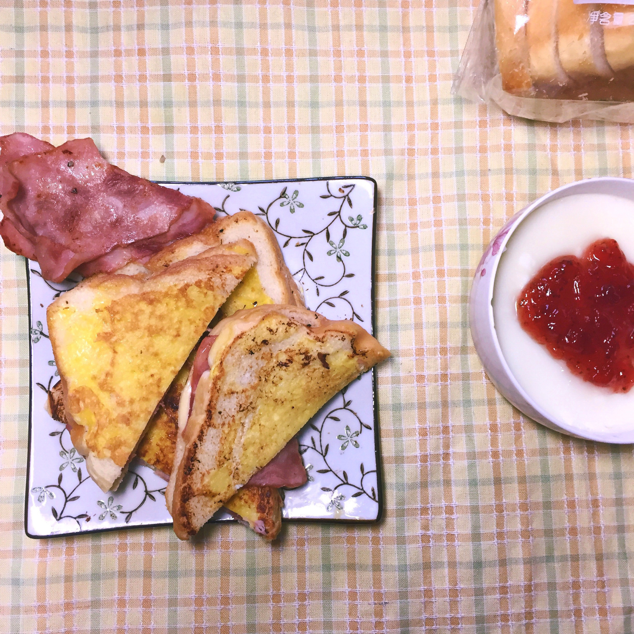 1⃣️5⃣️ Goodmoring 😊培根三明治➕双皮奶
