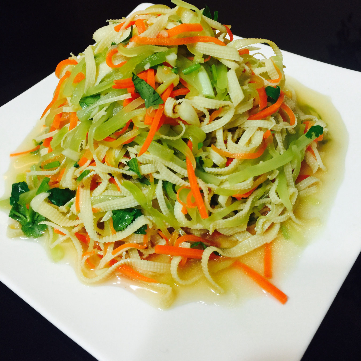 莴笋、胡萝卜、千张拌的三丝