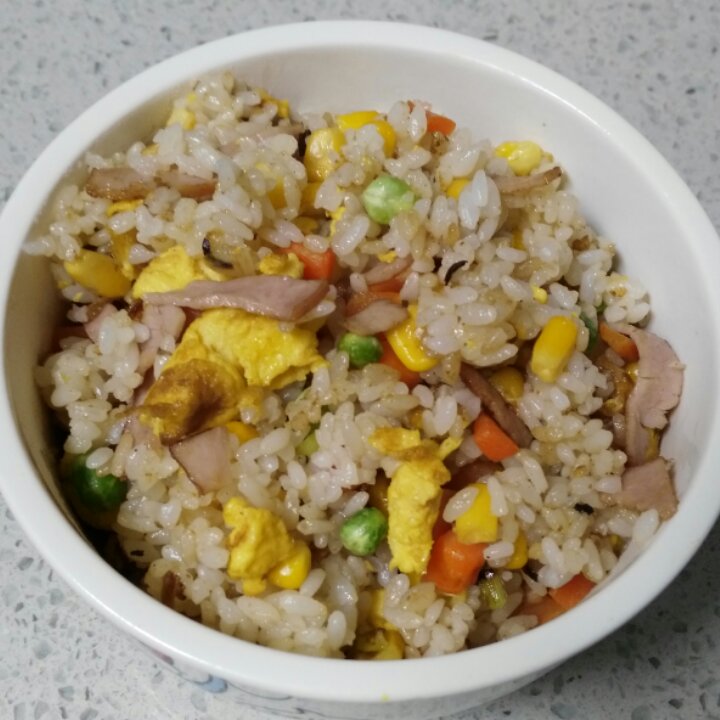 新米饭炒的,加了点酱油,白胡椒,老公饭扫光
