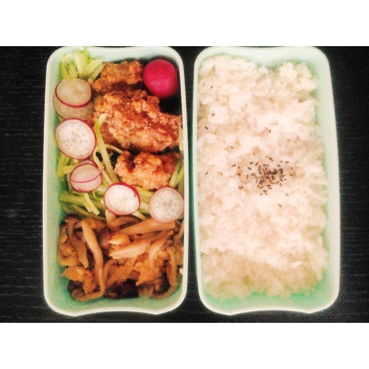 2016.3.24午餐便当🍱炸鸡块+蟹味菇滑蛋