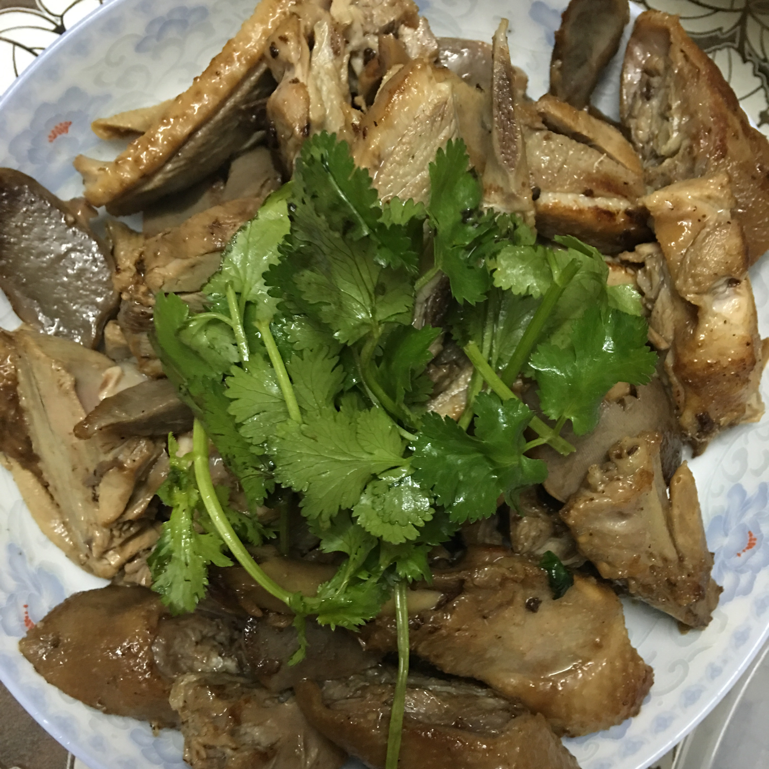炒卤水鸭、蒲瓜滚瘦肉汤、香煎豆干