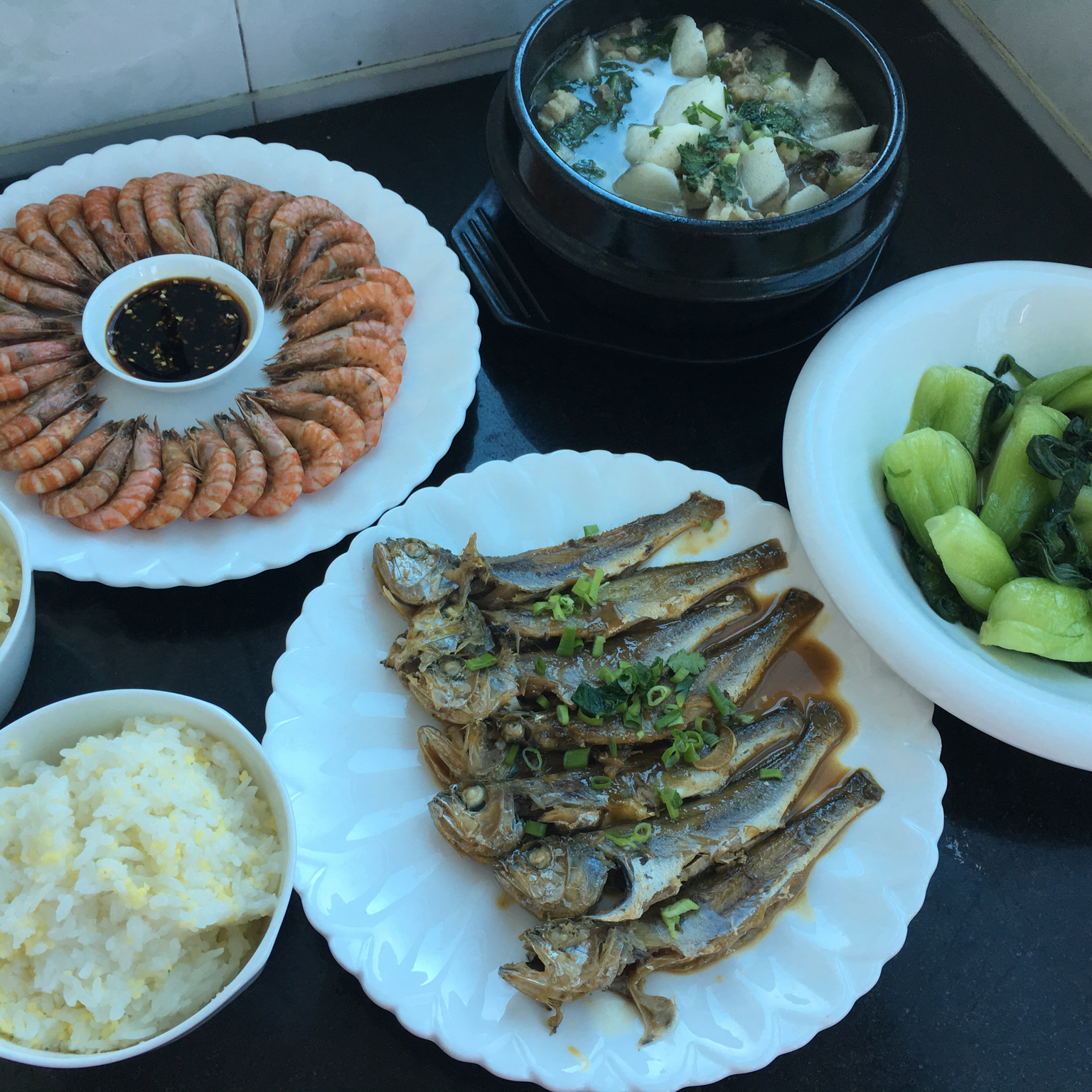 淼儿麻麻 做过 午餐•2016年3月27日 淼儿🏡的美味午餐~山药炖牛腩、家焖小黄花鱼、白灼基围虾、清炒油菜、主食二米饭。淼儿学业水平测试第二天,加油! #午餐•2016年3月27日# 2016-03-27