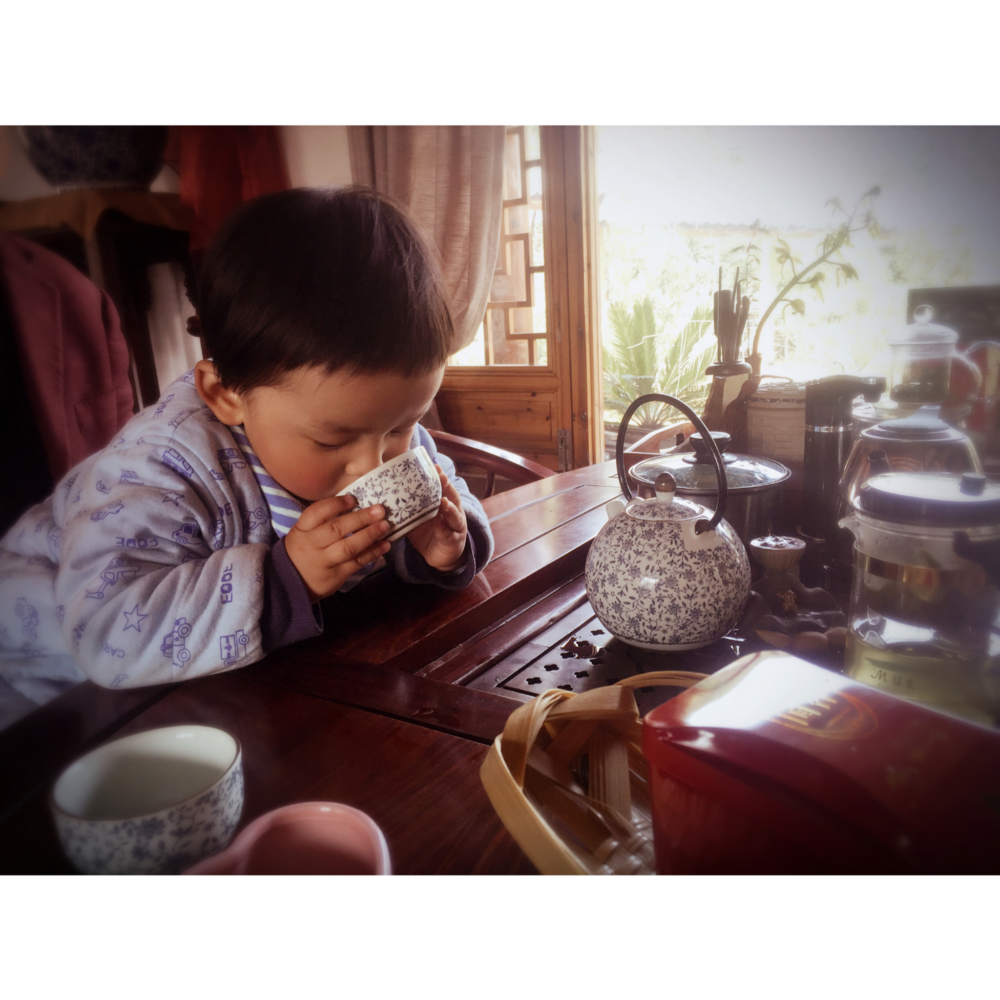 是不是有模有样的~他是真的爱茶呢~做在茶桌边就不愿意下来