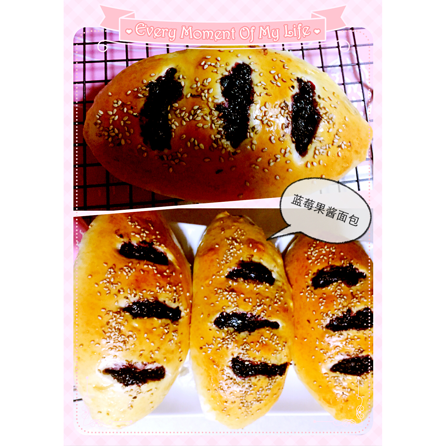 满屋面包香 软胖的不行 太可耐了!没放椰蓉 纯蓝莓果酱😝