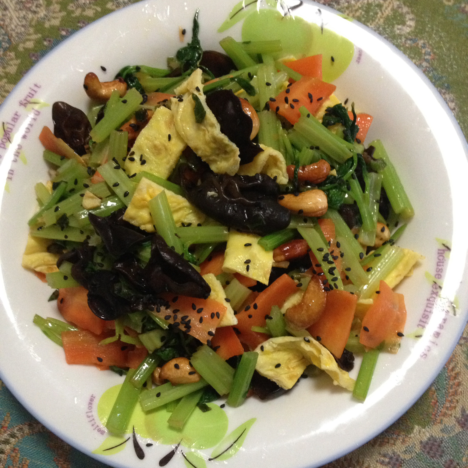 青菜、银耳莲子百合打粥、千层饼