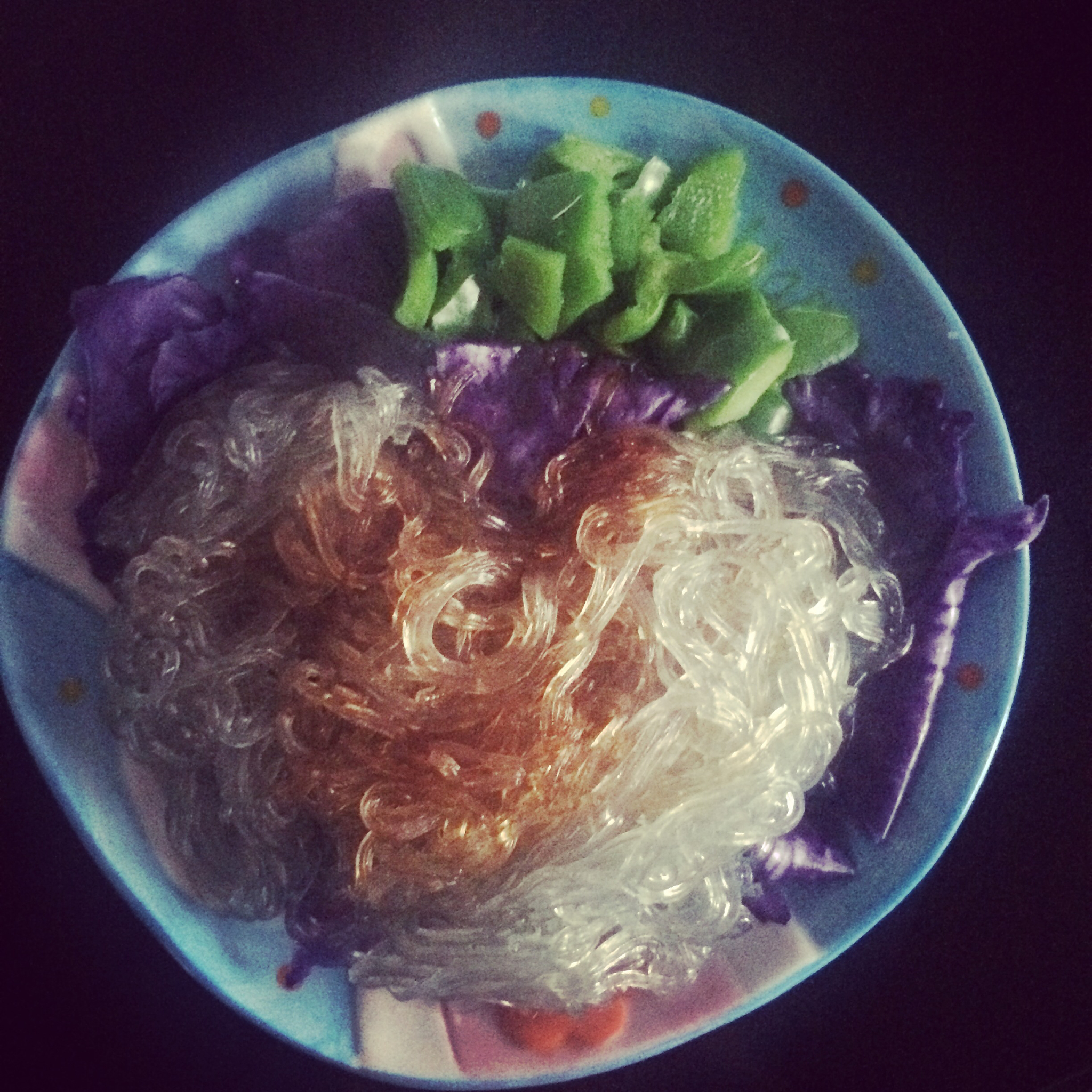 油伴甘蓝青椒粉丝~用山茶油和酱油浇在红薯粉丝上味道好极了